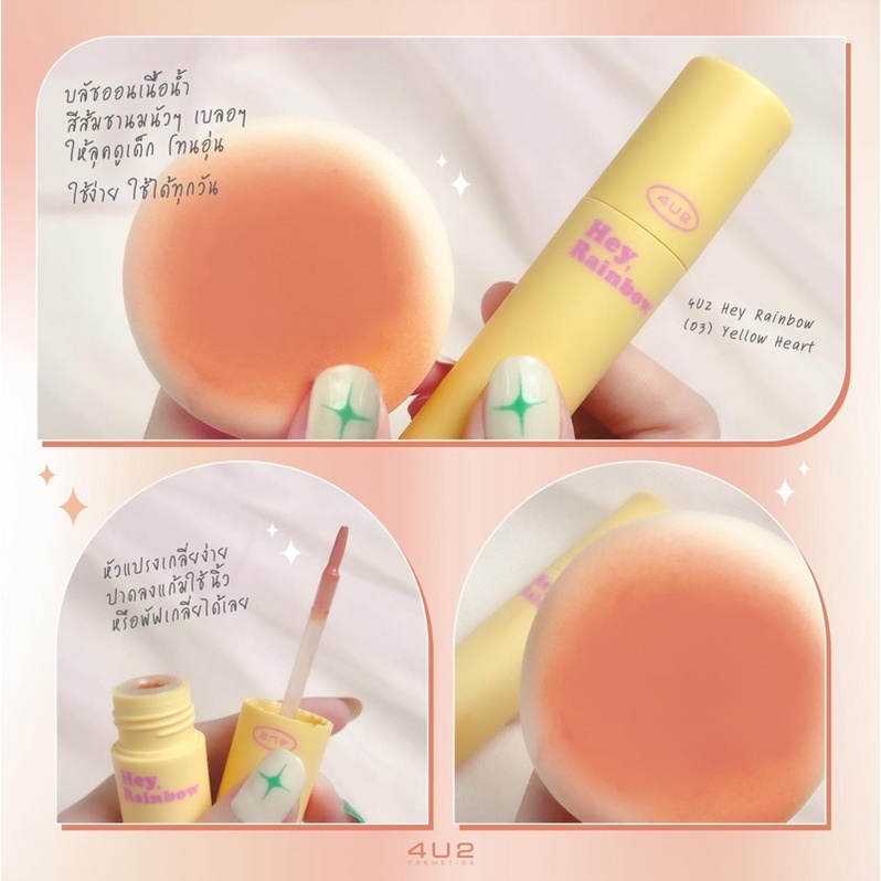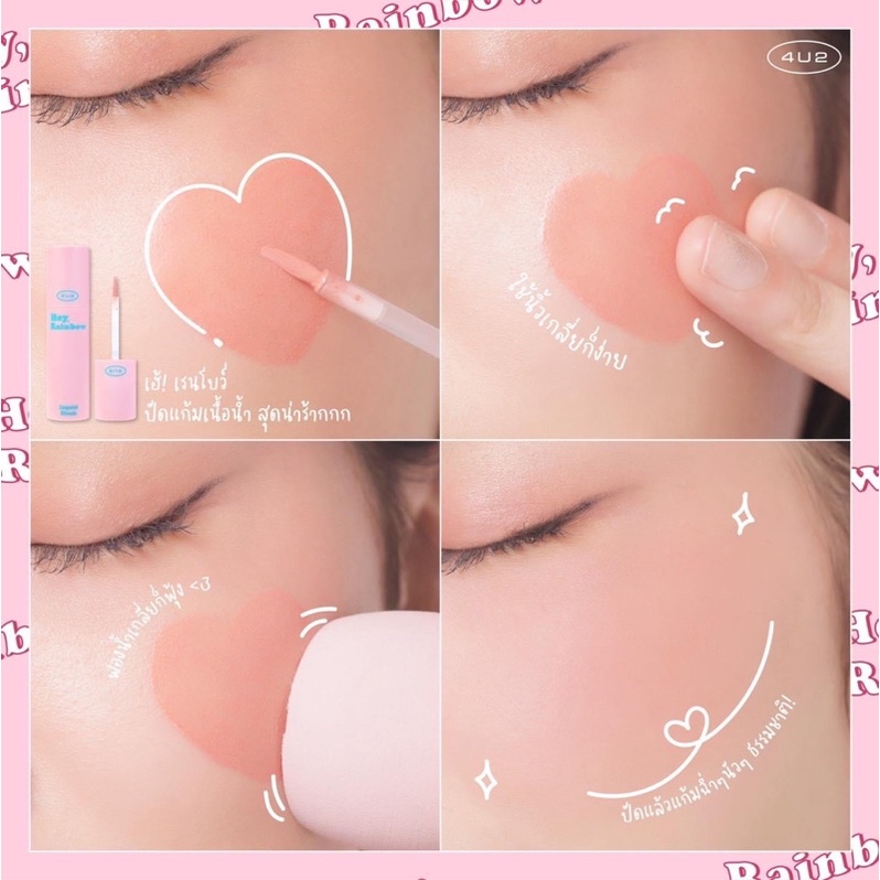 บลัชออนเนื้อน้ำ 4U2 HEY, RAINBOW รุ่นใหม่ แพคเกจสีสันน่ารักมาก เกลี่ยง่ายเนียนไปกับผิว สีระเรื่อๆดูเป็นธรรมชาติ