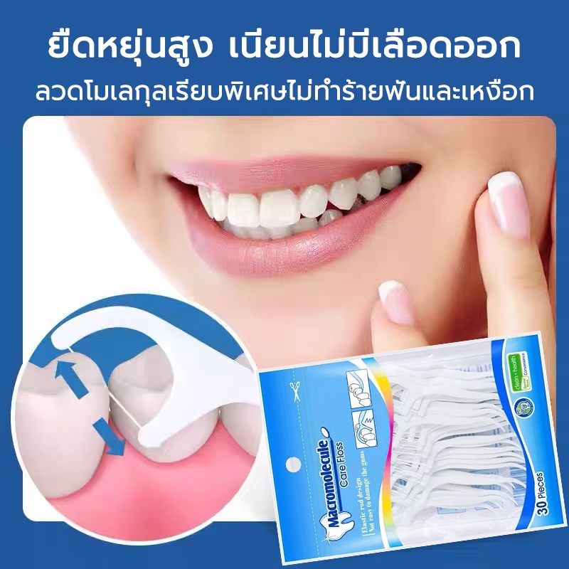 ไหมขัดฟัน ไหมขัดฟันชนิดด้าม Dental Floss 30ชิ้น /ถุง ใช้ไหมขัดฟันหลังอาหาร ไหมขัดฟันแบบใช้แล้วทิ้ง. เพื่อขจัดสิ่งตกค้าง