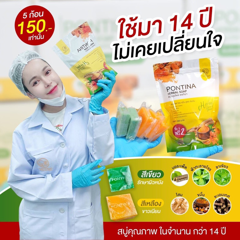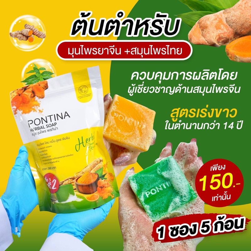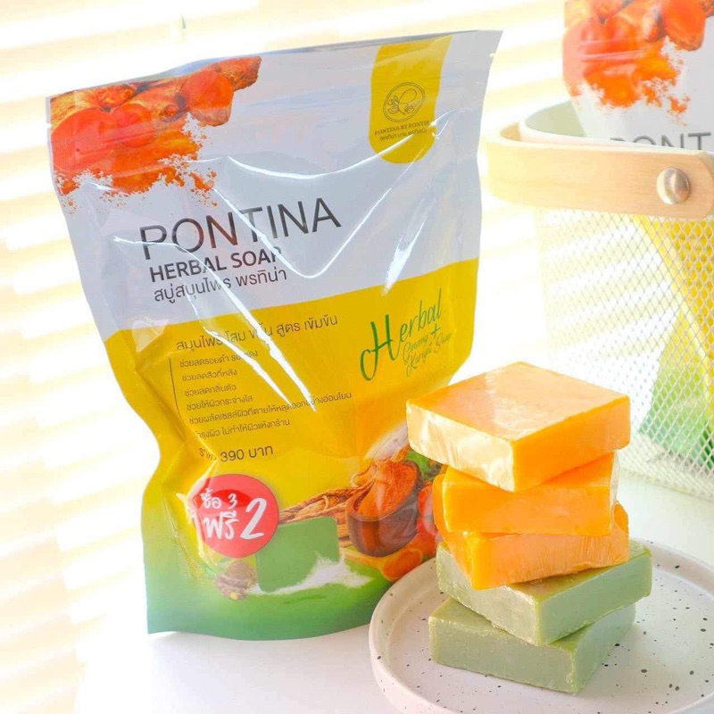 (มีสองสูตร+พร้อมส่ง) สบู่พรทิน่า🧡💚 1 ซองมี 5 ก้อน PONTINA Herbal Soap 🧡💚 พรทิน่า สบู่สมุนไพรพรทิน่า Pontina Herbal Soap