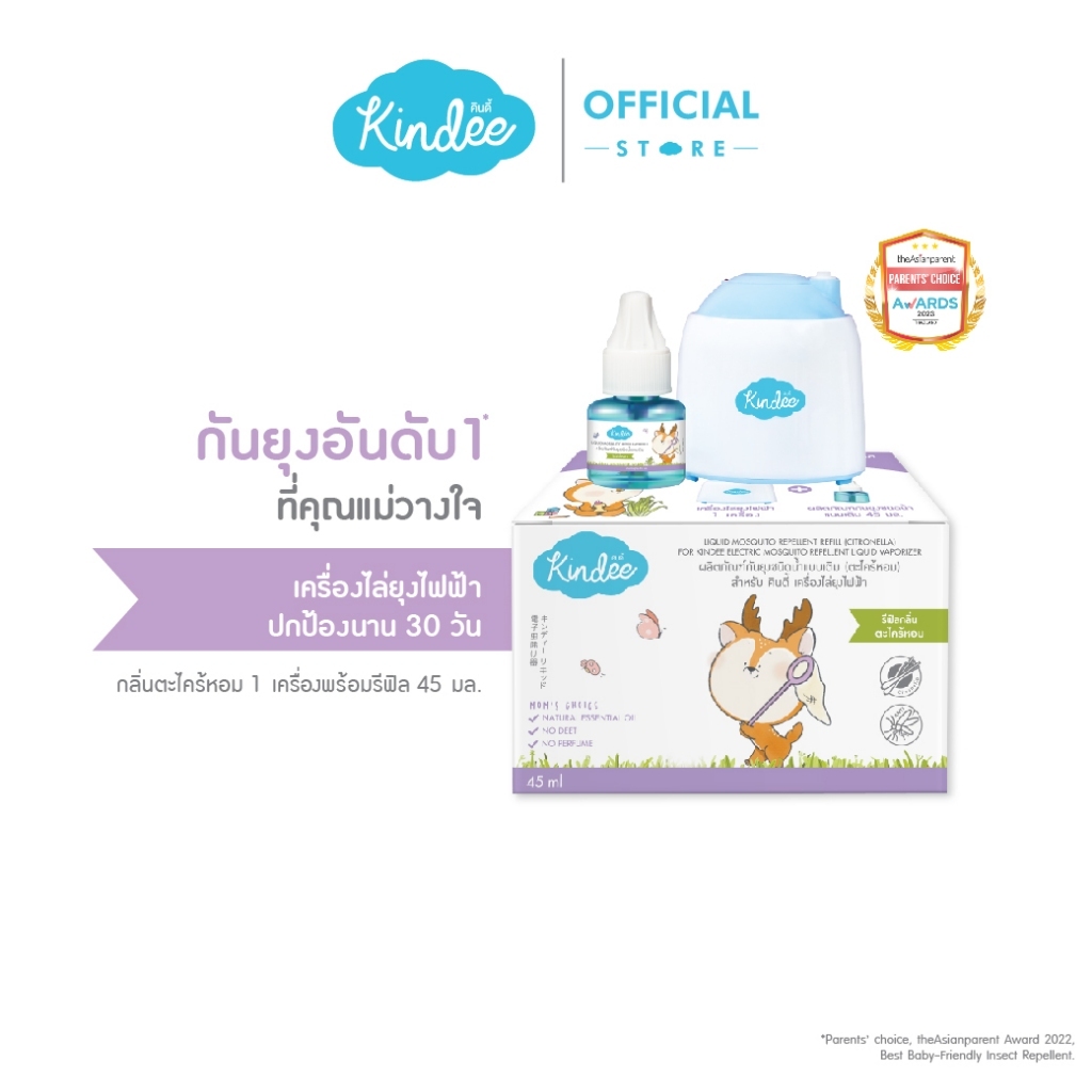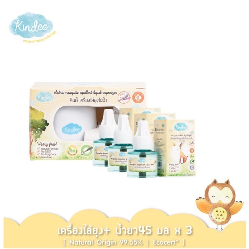 ❤️ Kindee คินดี้ เซ็ตป้องกันยุงร้ายเครื่องไล่ยุงไฟฟ้า 1 เครื่อง + รีฟิว 3 ขวด