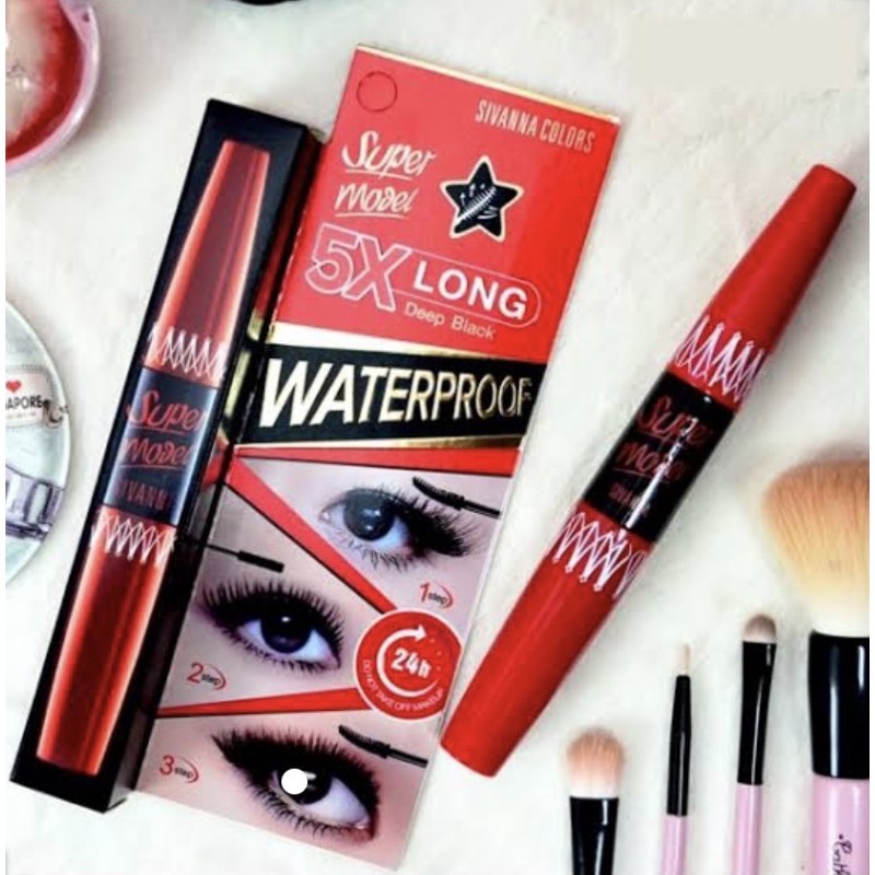 มาสคาร่า ซีเวนน่า คัลเลอร์ส Sivanna Colors Super Model 5X Long Deep Black Waterproof HF893