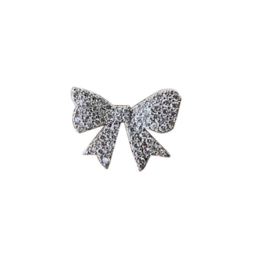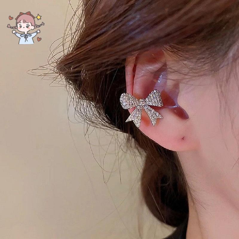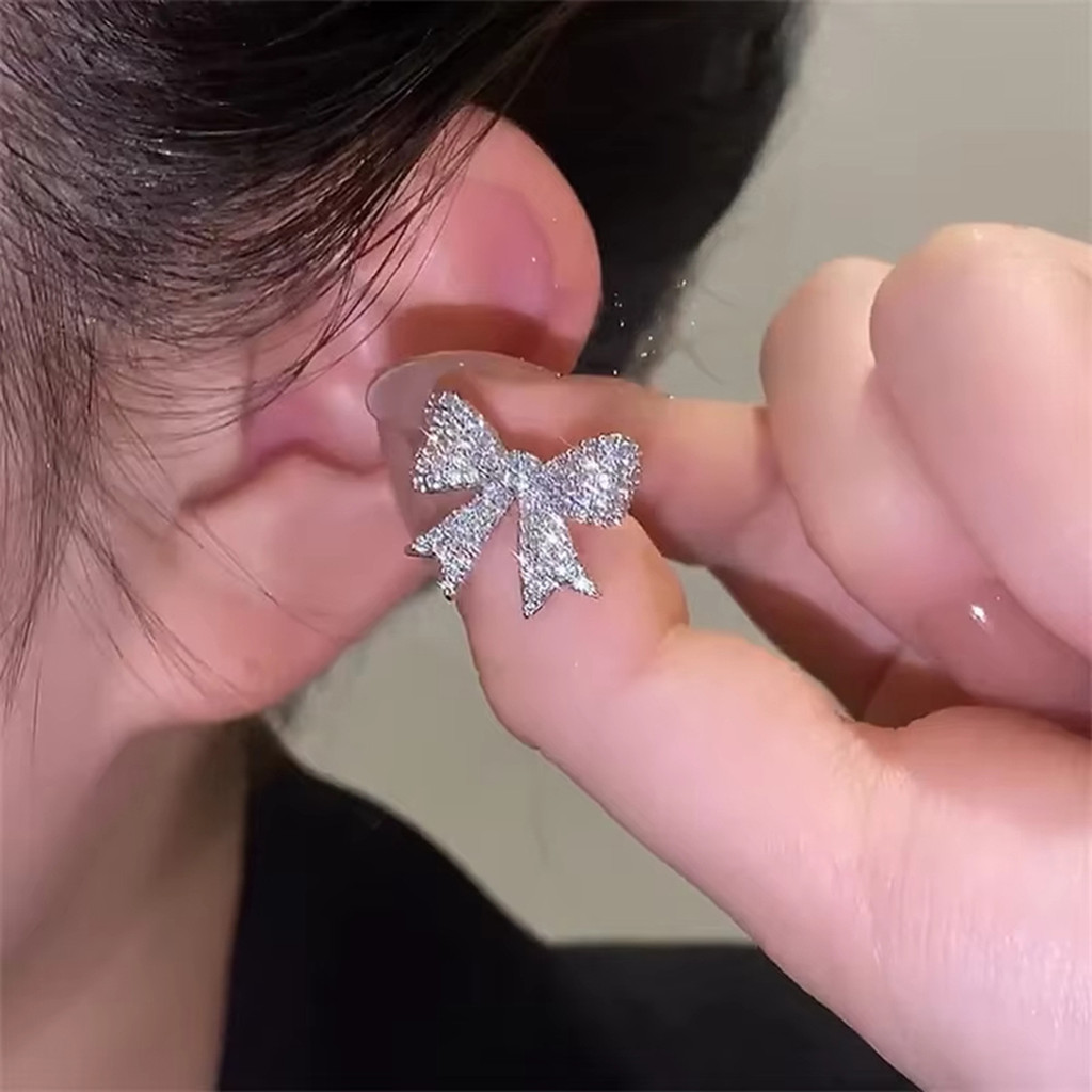 1ชิ้นคริสตัลโบว์คลิปต่างหูสําหรับผู้หญิง พลอยเทียม ไม่เจาะหูข้อมือสีเงินกุทัณฑ์ต่างหู