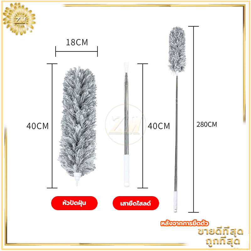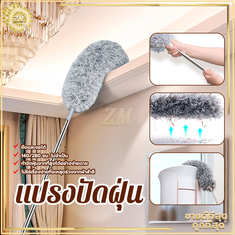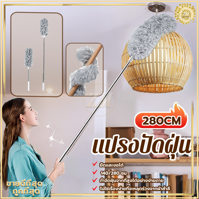 แปรงปัดฝุ่น ไม้ปัดฝุ่น ไม้กวาดหยากไย่ ไม้ปัดฝุ่นไมโครไฟเบอร์ ปรับความงอ ปรับยืดได้ 0.6-2.8 ม ฝุ่นไม่ปลิว ซักได้
