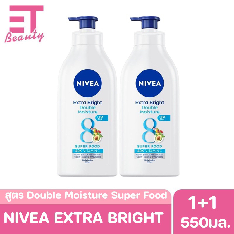 etbeauty [2ขวด] Nivea นีเวีย เอ็กซ์ตร้า ไบรท์ ดับเบิ้ล มอยส์เจอร์ บอดี้ โลชั่น 550 มล.x2