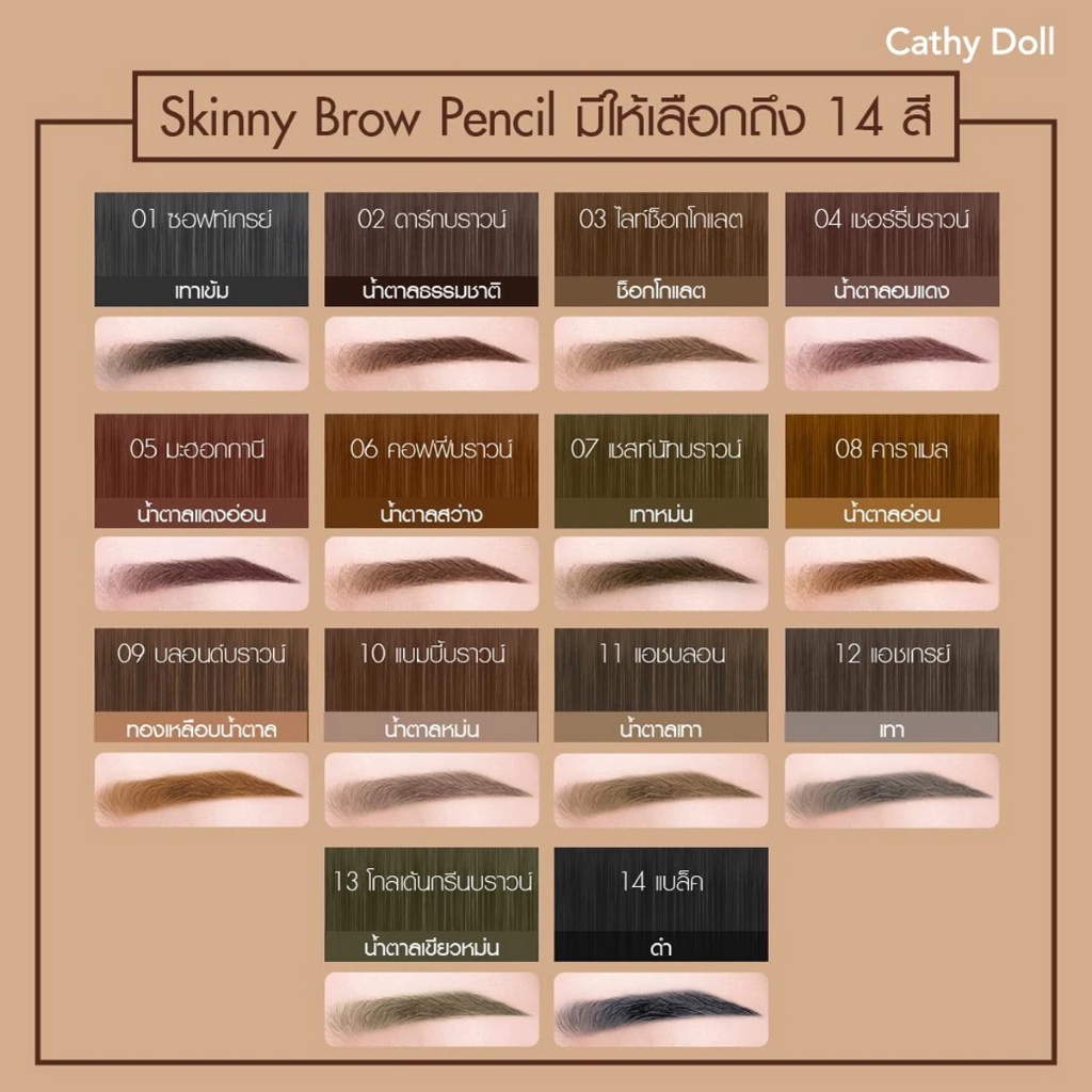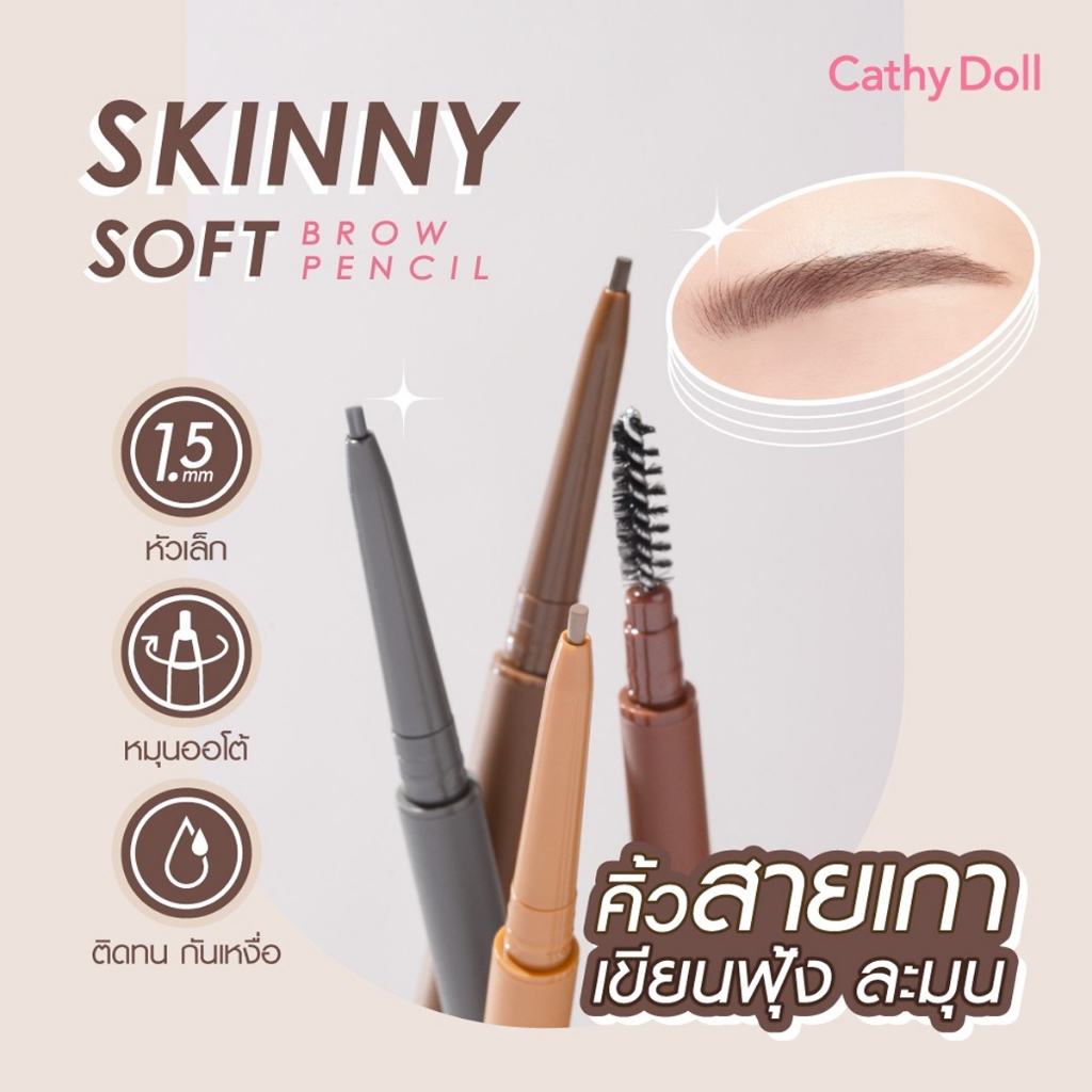 CATHY DOLL เคที่ดอลล์ สกินนี่ ซอฟท์ บราว เพ็นซิล 0.06 กรัม Skinny Soft Brow Pencil 0.06g (มีให้เลือก 7 เฉดสี)