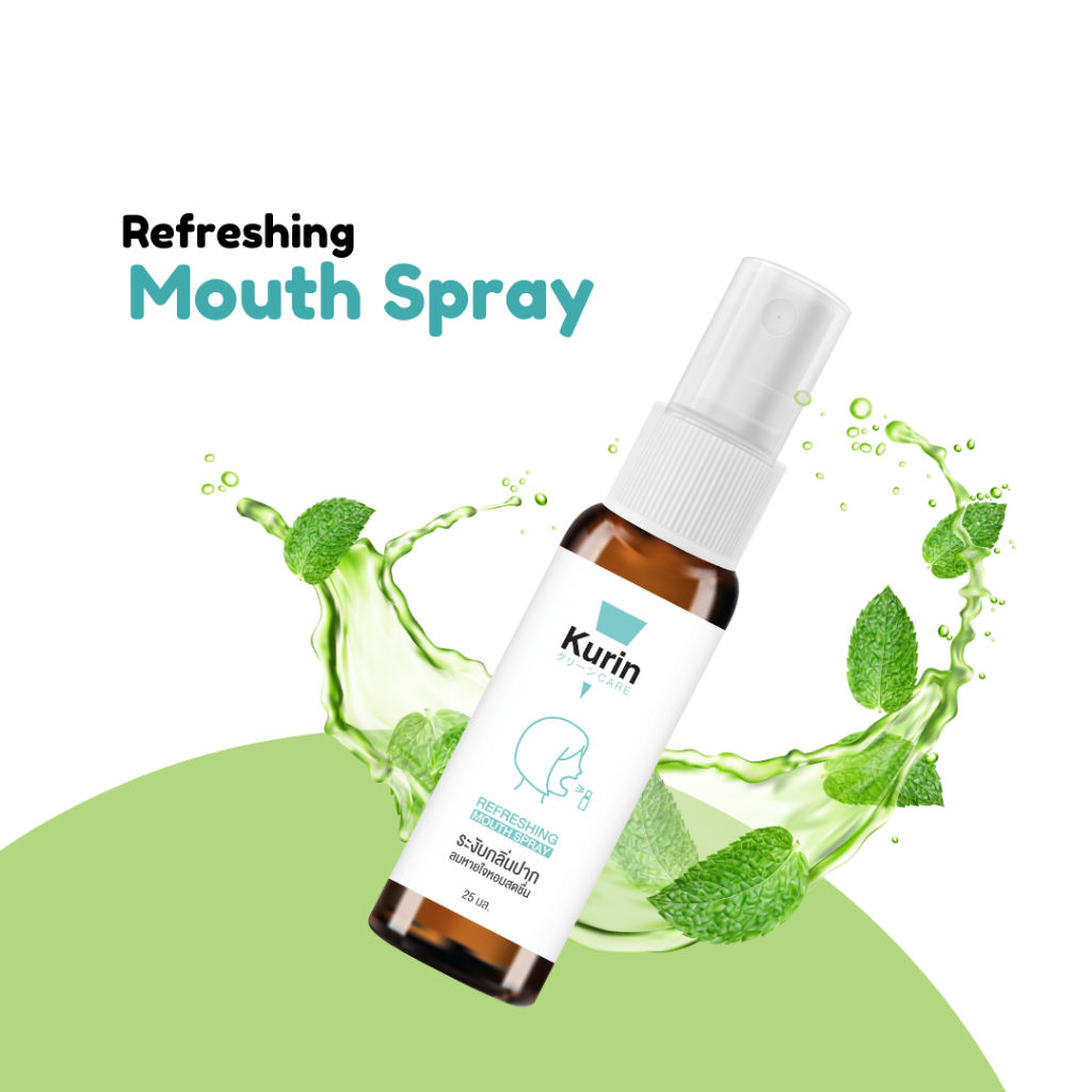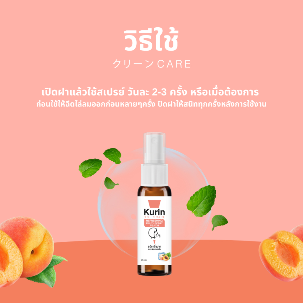 จับ คู่ Kurin care Refreshing Mouth Spray Mint & Peach 25 ml./ขวด
