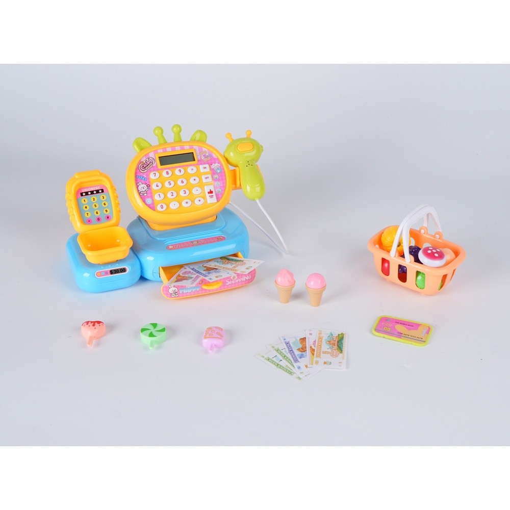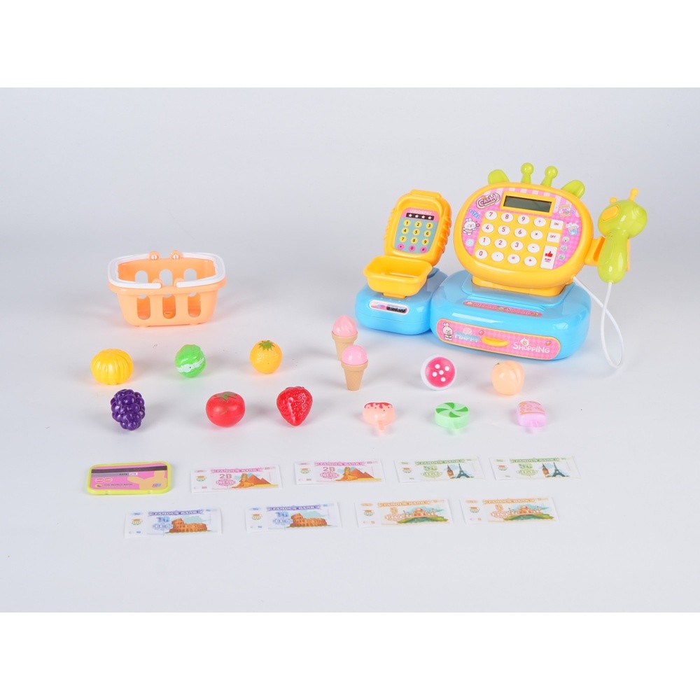 GlobalHouse TOYS ของเล่นเครื่องแคชเชียร์คิดเงินพร้อมตะกร้าผลไม้ รุ่น L858-3H ขนาด 28x17x17 ซม. คละสี