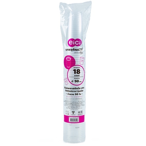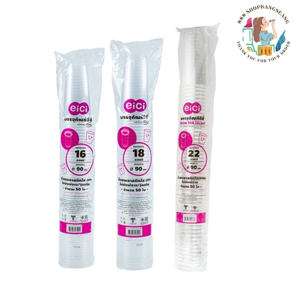 แก้วพลาสติกใส PP ตราอีซี่ eici 16oz,18oz ,22oz ปาก 90 มม. 50ชิ้น/แพ็ค