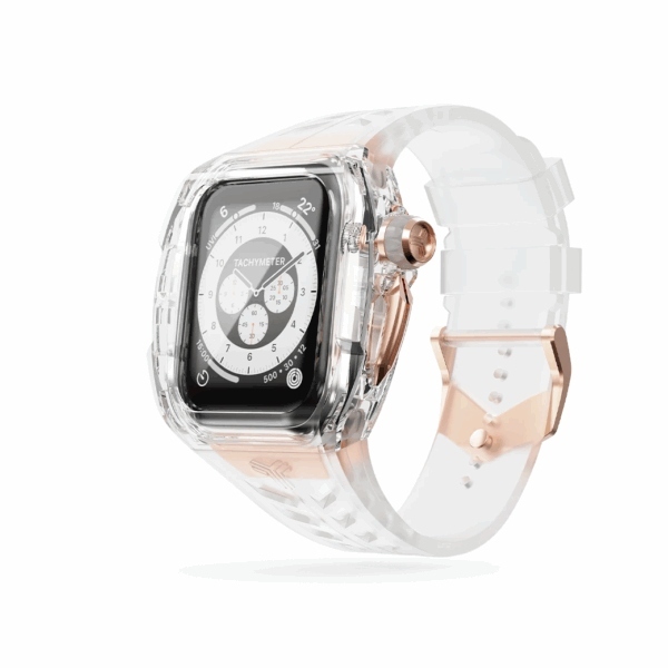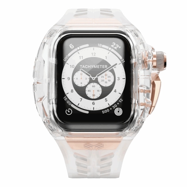 Y24 BELLEVUE เซ็ตเคสและสายนาฬิกาสำหรับ Apple Watch (45mm) – สี Transparent/Rose Gold