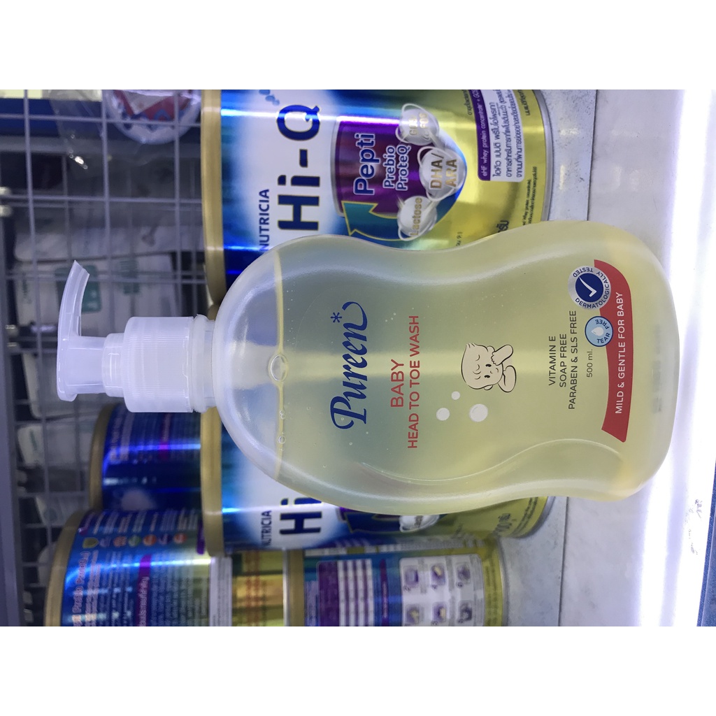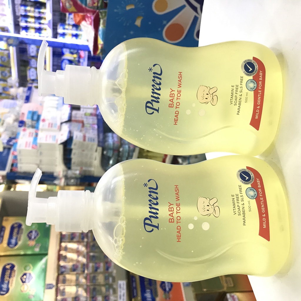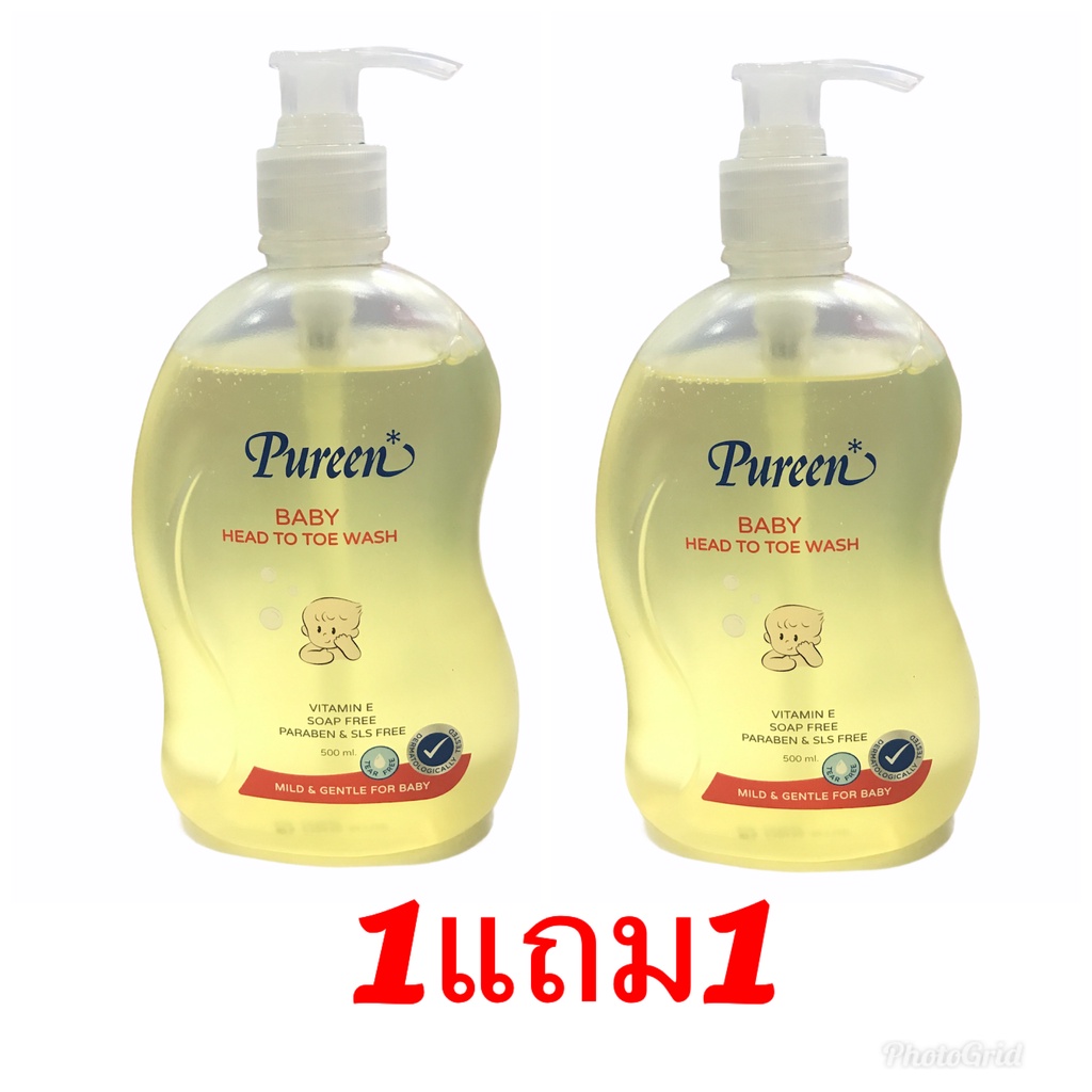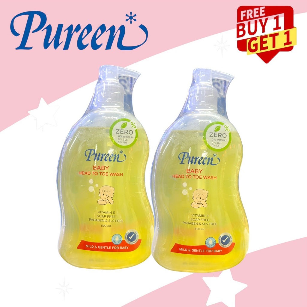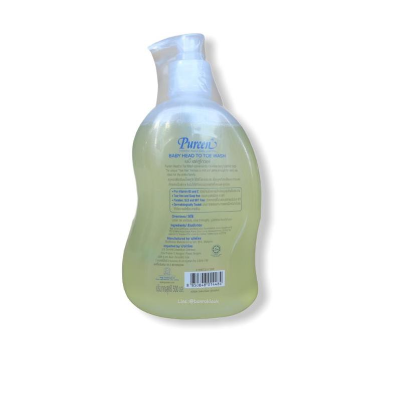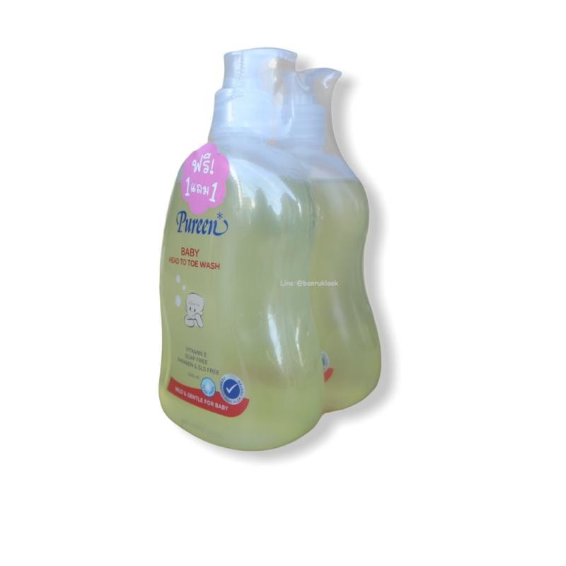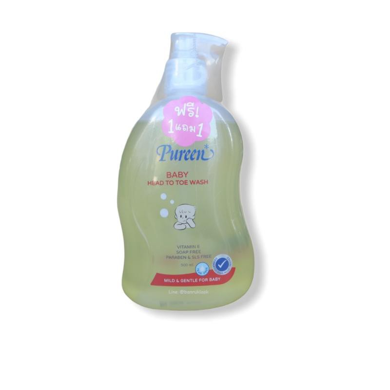 Pureen สบู่เหลว เบบี้เฮดทูโทวอช สีเหลือง Baby head to toe wash 500 ml. แพ็ค ( 1 แถม 1 )