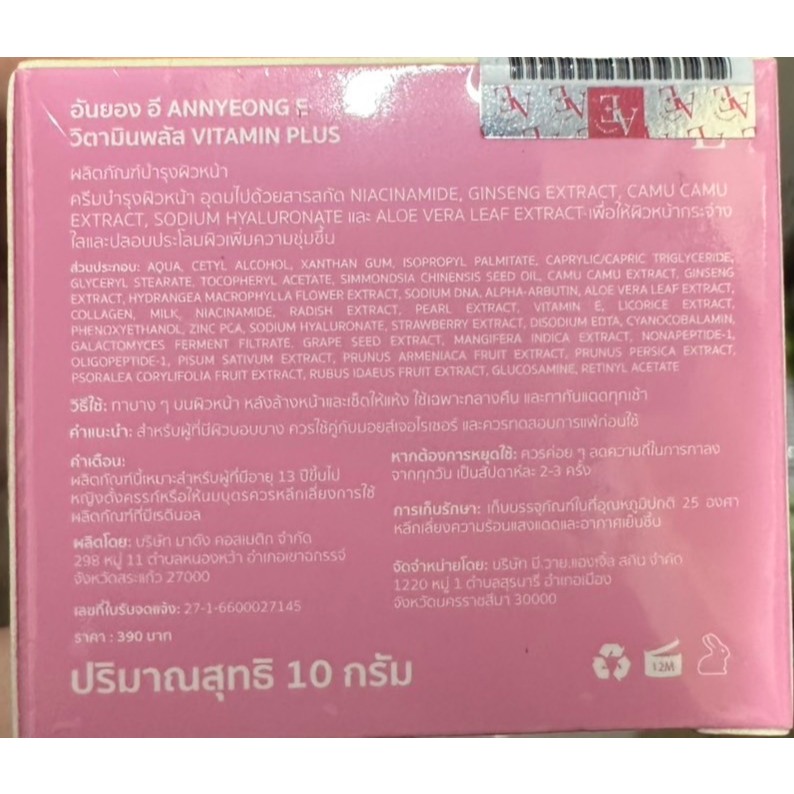 Annyeong E Vitamin Plus อันยองอี ครีม ลดริ้วรอย บำรุงผิวกระจ่างใส ผิวหน้า ชุ่มชื่น 10 g