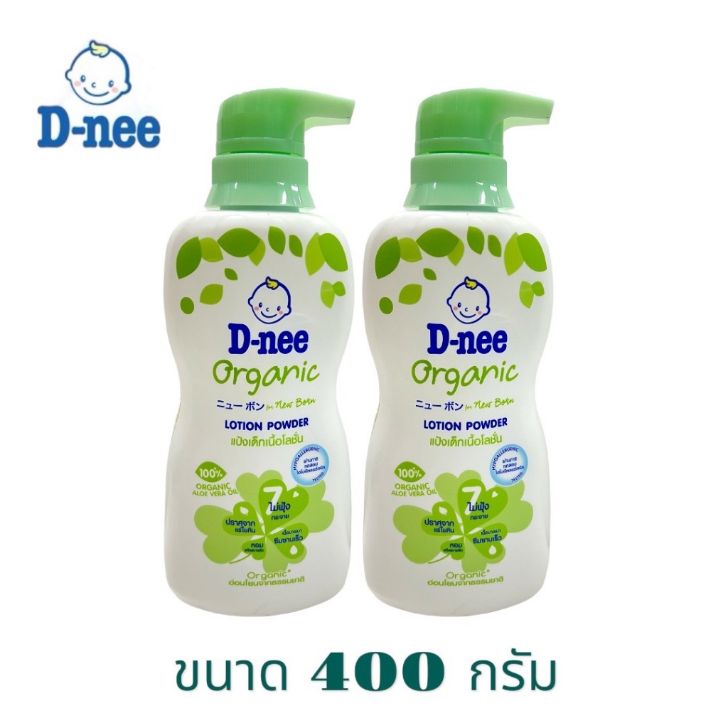 D-Nee ดีนี่ แป้งเด็กเนื้อโลชั่น หัวปี๊ม สีเขียว ออแกนิค ขนาด 400 มล. (จำนวน1ขวด)