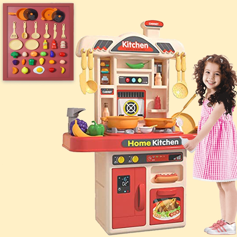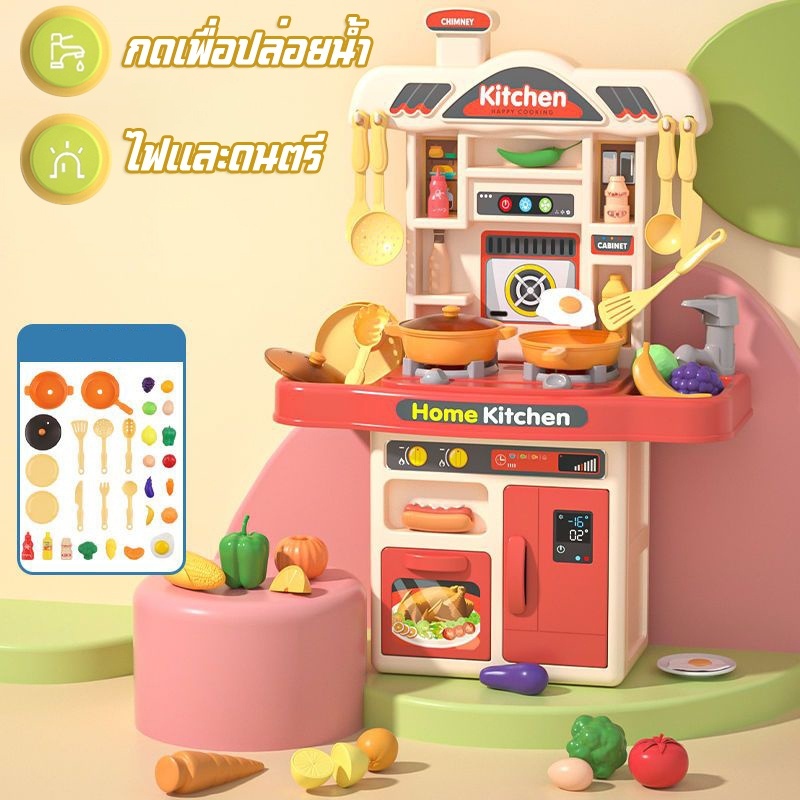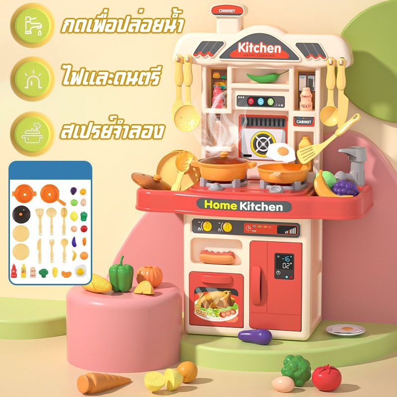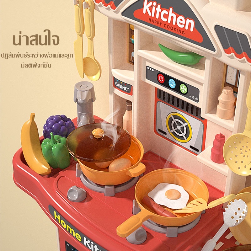 ชุดครัวใหญ่42ชิ้น ชุดครัวของเล่นเด็กชุดครัวพร้อมแสงและเสียง มีเสียง มีไฟ กดน้ำได้ มีควัน