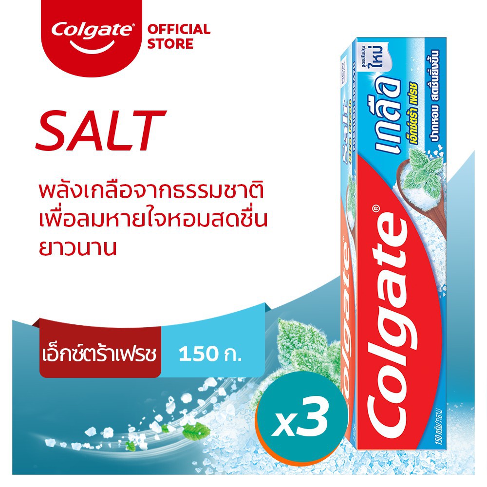 Colgate ยาสีฟัน คอลเกต เกลือ เอ็กซ์ตร้า เฟรช ครีม 150g ช่วยให้ลมหายใจหอมสดชื่น
