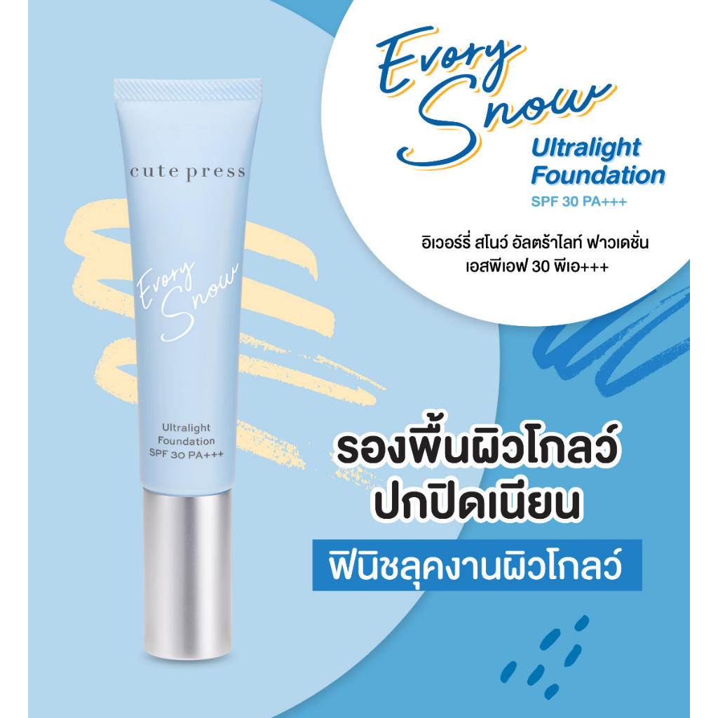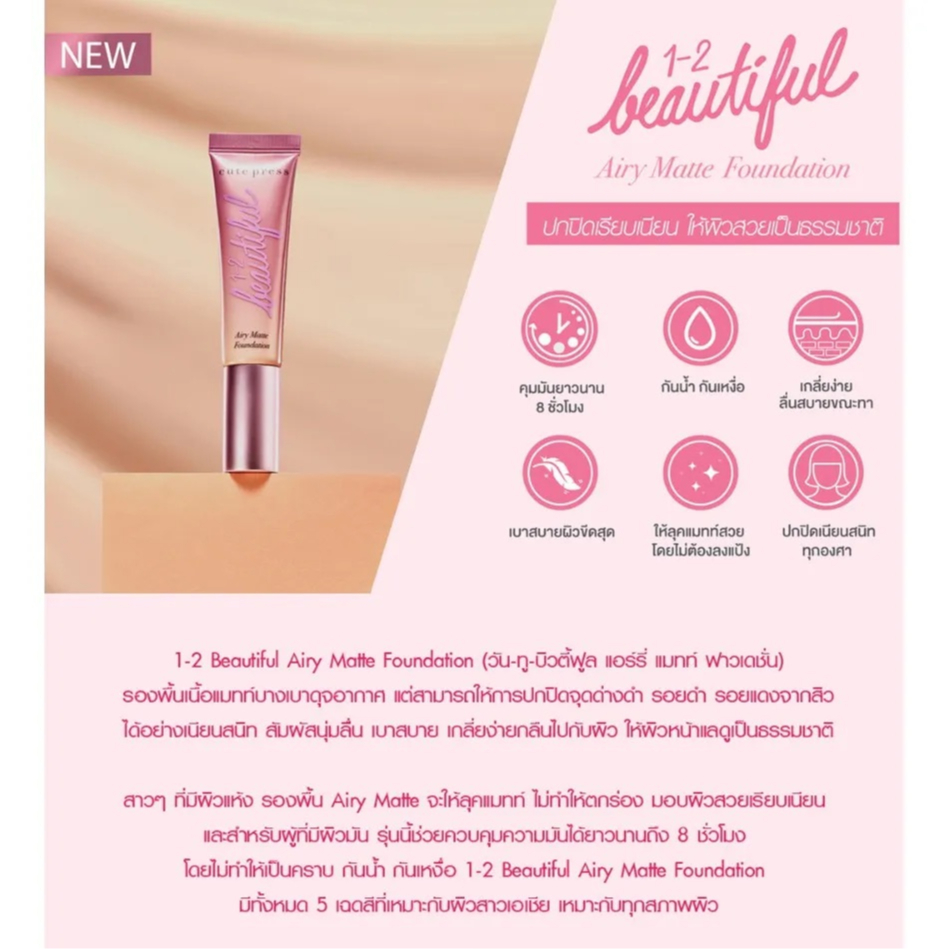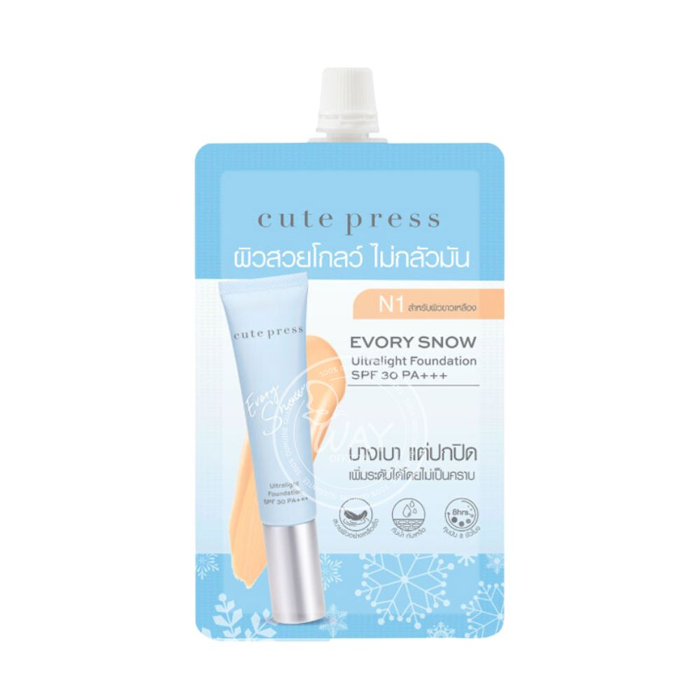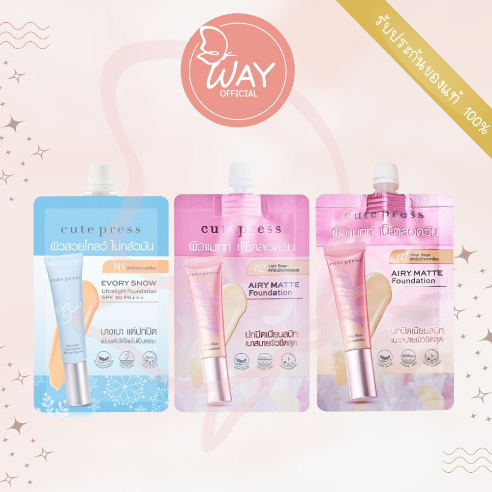 [ซอง] คิวท์เพรส อิเวอร์รี่ สโนว์/ แอร์รี่ แมทท์ ฟาวเดชั่น Cute Press Evory Snow/ 1-2-Beautiful Airy Matte Foundation 5g