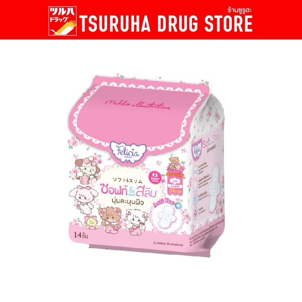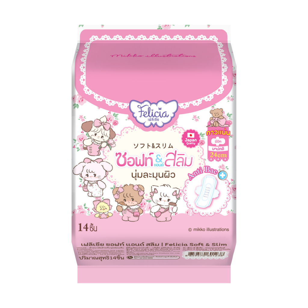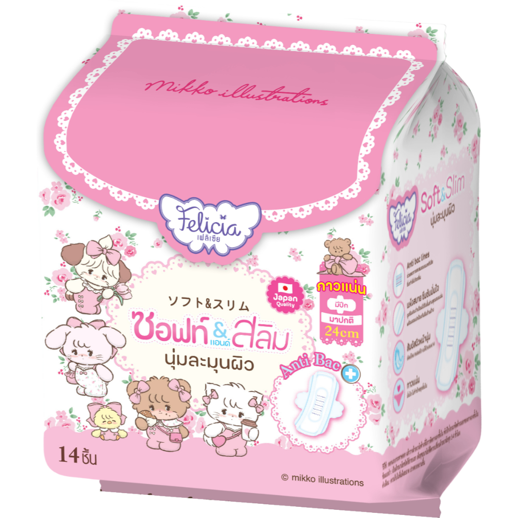 เฟลิเซีย ผ้าอนามัยแบบแผ่น รุ่น ซอฟท์แอนด์สลิม 24 ซม. / Felicia Sanitary Napkin Pad Soft & Slim 24 cm. Felicia Soft&Slim