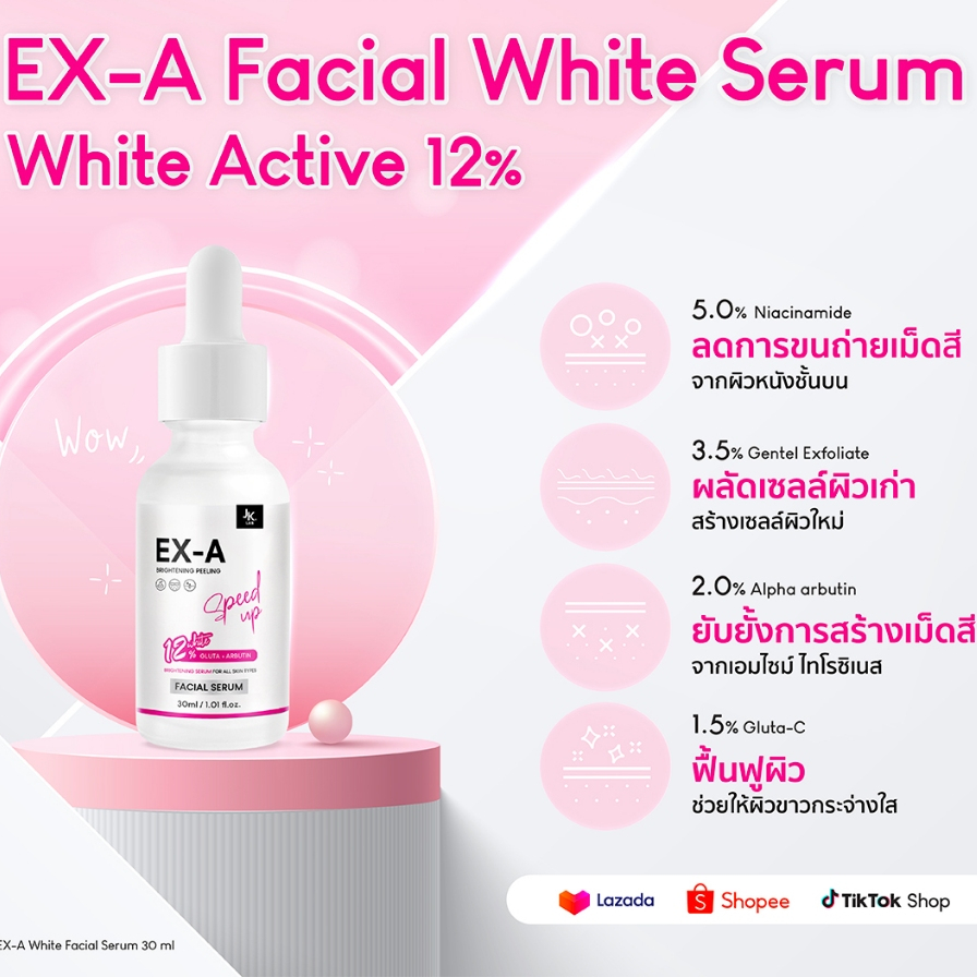 JKxLAB EX-A Facial White Serum 30 ml เซรั่มผิวหน้าที่มีไวท์เทนนิ่งสูงมากถึง 12%