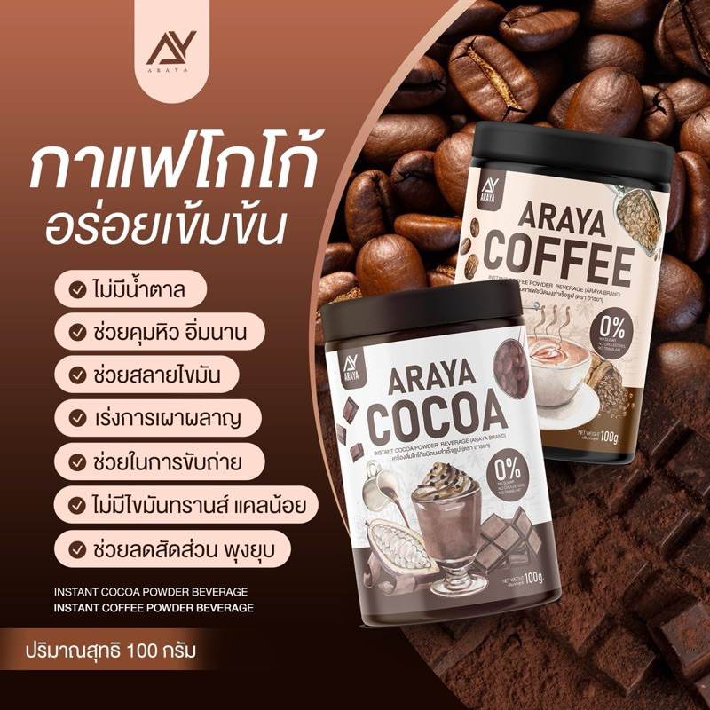 Araya cocoa โกโก้คุมหิว อารยา / araya coffee กาแฟคุมหิว [1 กระปุก]