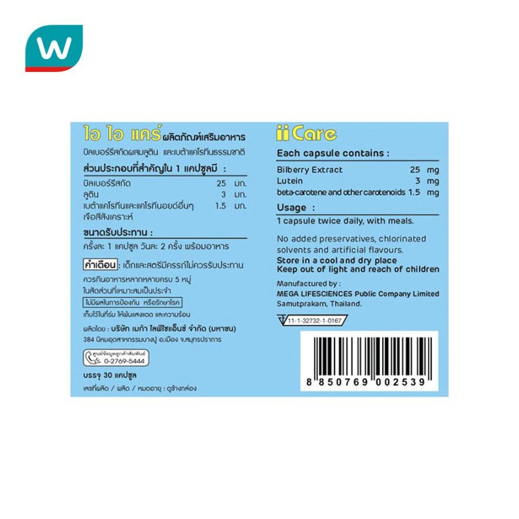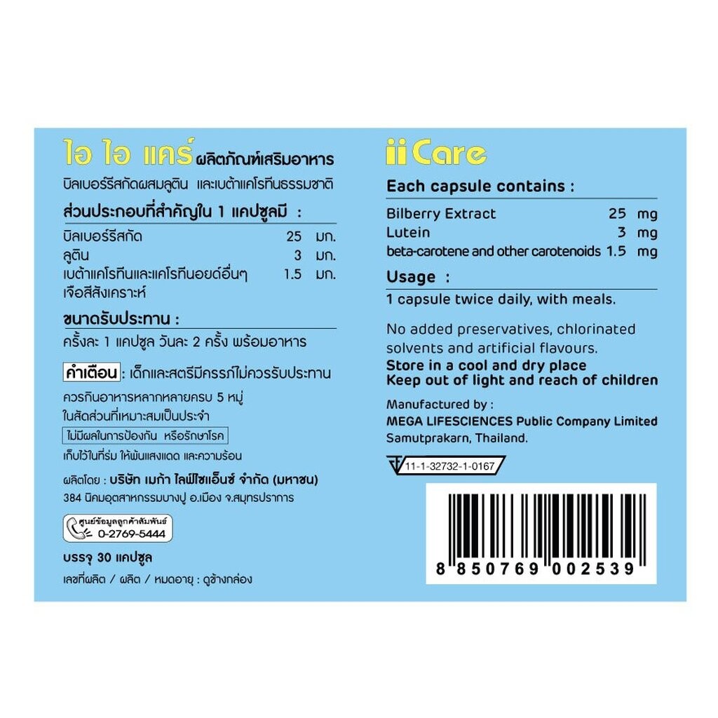 Mega วิตามินบํารุงสายตา Mega We Care II Care เมก้า วีแคร์ ไอ ไอ แคร์ 30 เม็ด