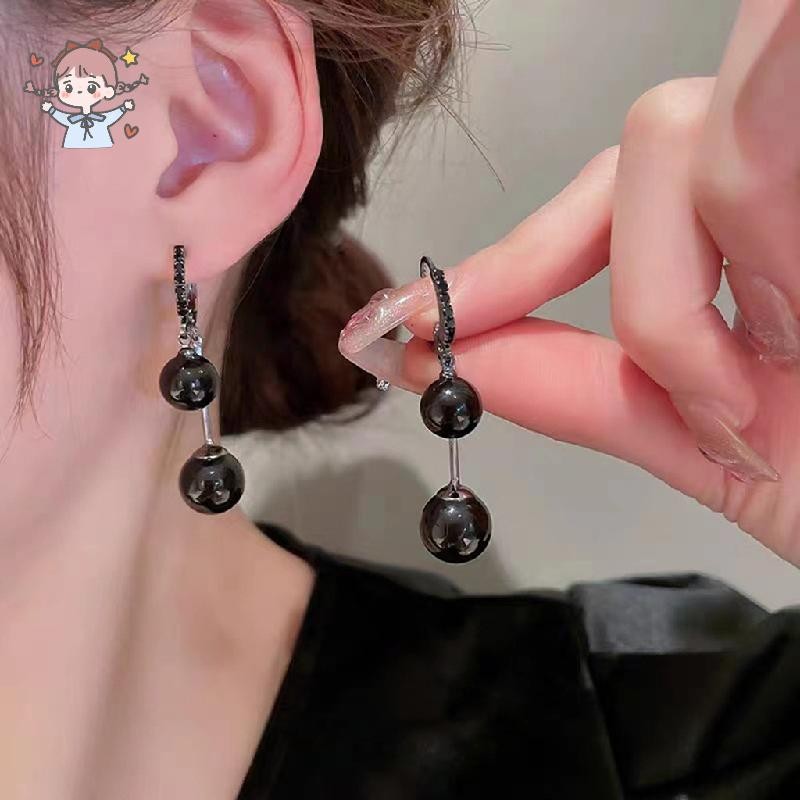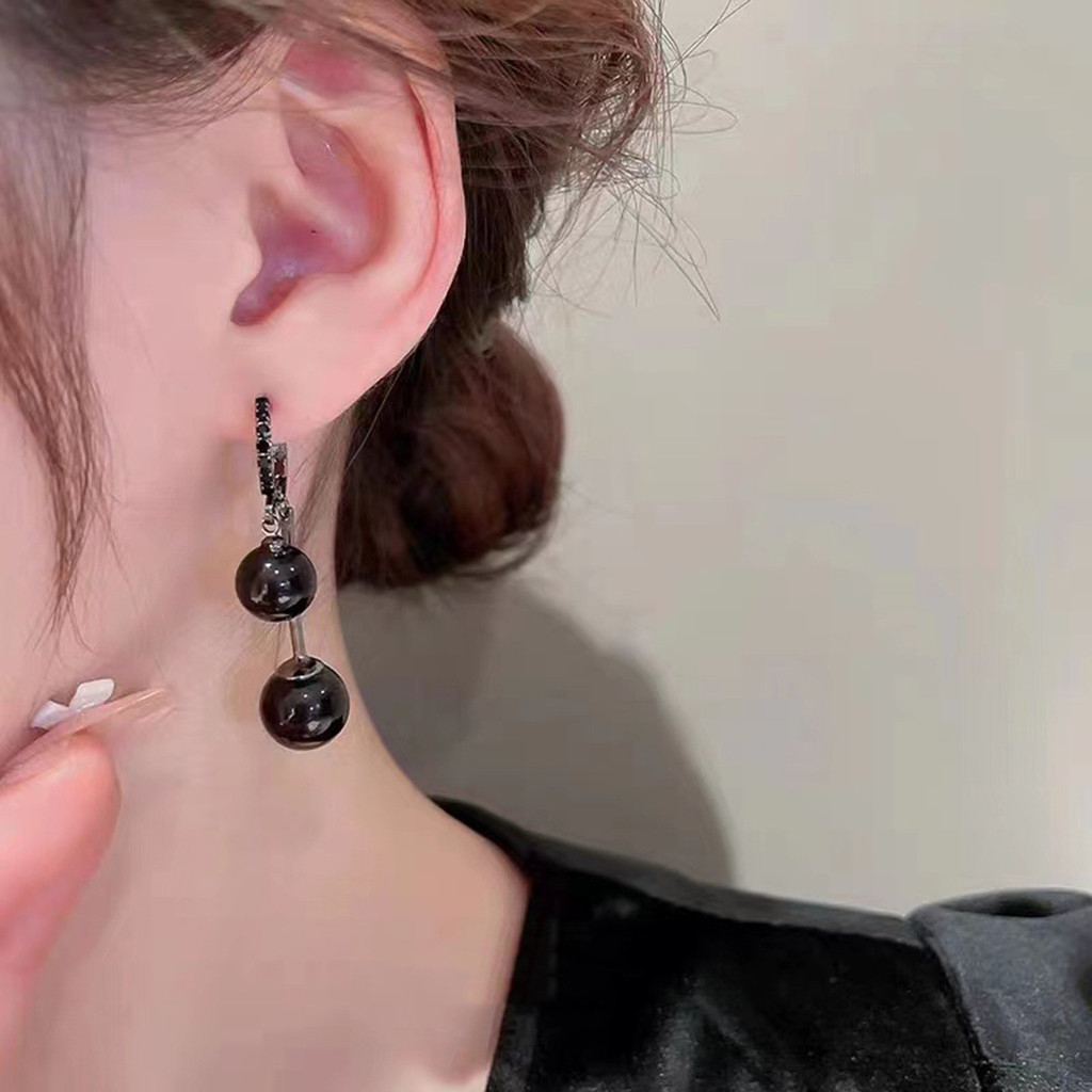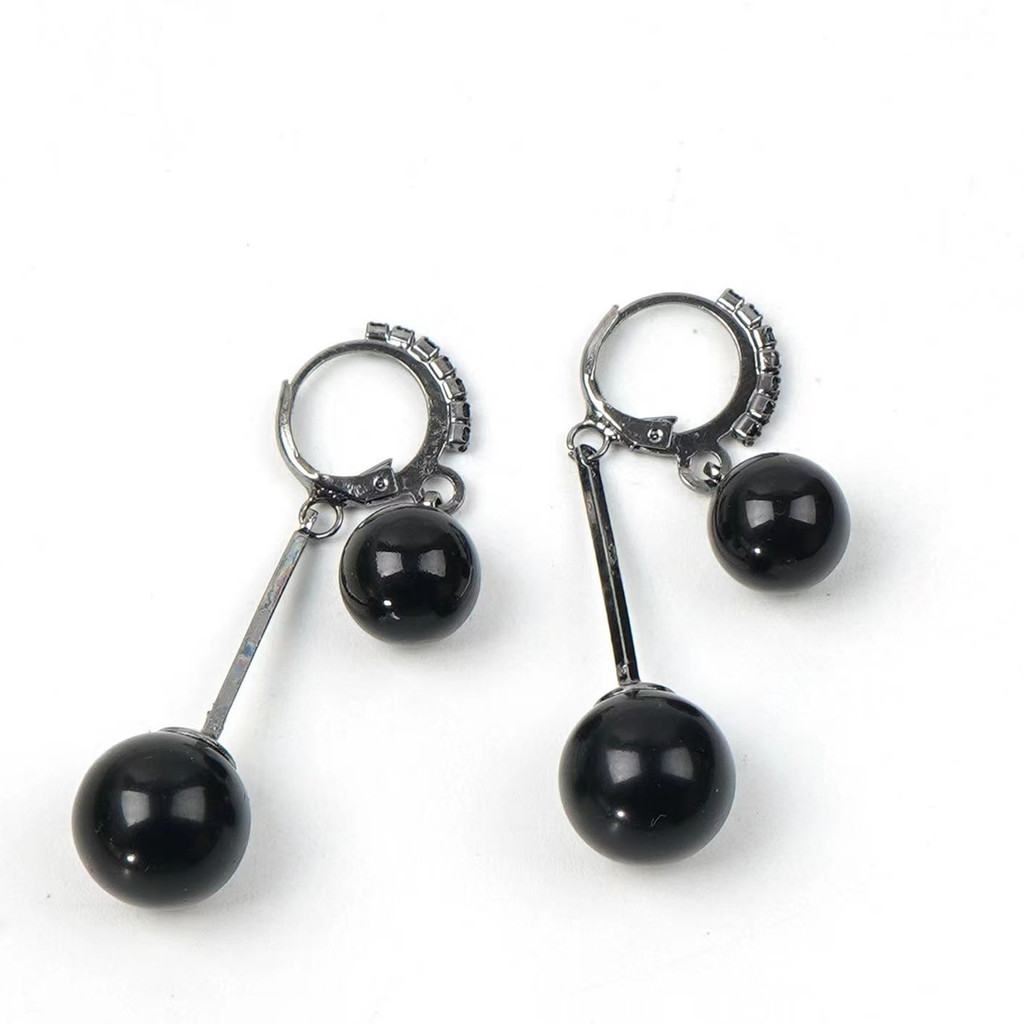 ต่างหูลูกปัดทรงกลมสีดำย้อนยุคดีไซน์เฉพาะตัว