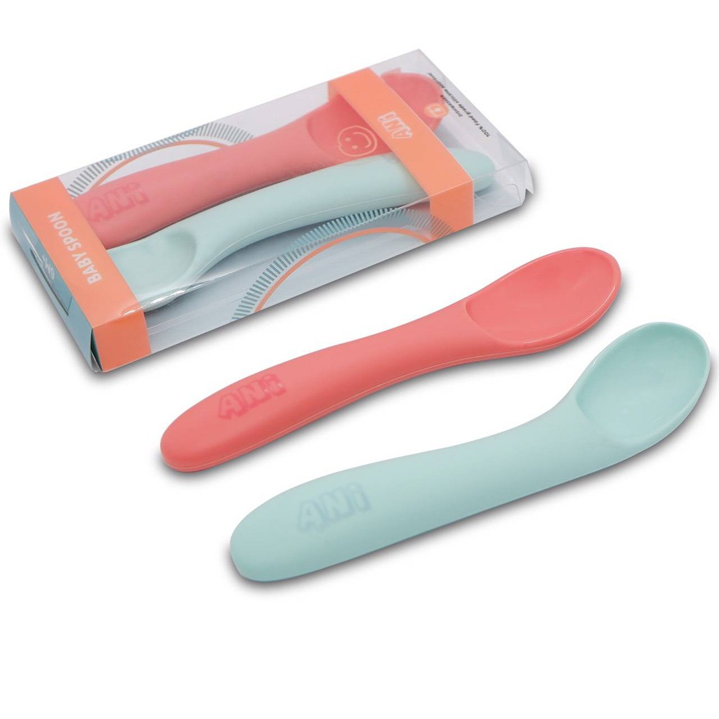 Ani ชุดช้อนหัดตักซิลิโคนนิ่ม สีเขียว ส้ม #90372