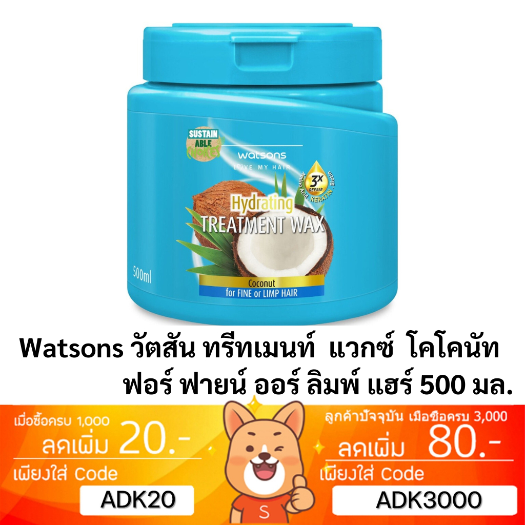 ลดเพิ่ม 30% 🔥 WATSONS Treatment WAX วัตสัน ทรีทเม้นท์ แวกซ์ บำรุงผม 500 มล ทรีทเม้นท์บำรุงผม ครีมนวดผม ครีมบำรุงผม รวม