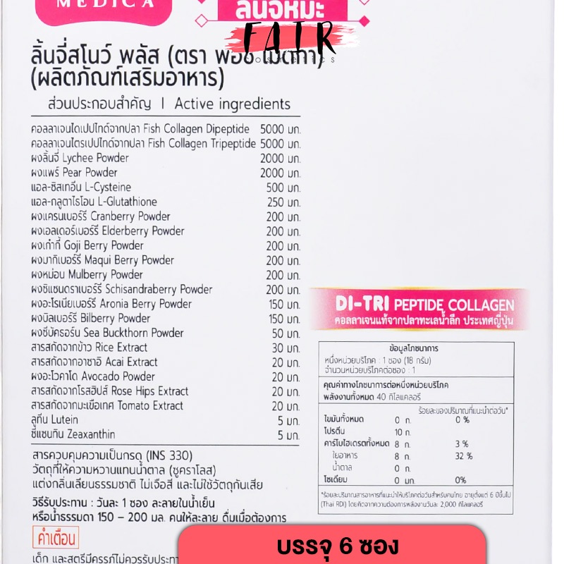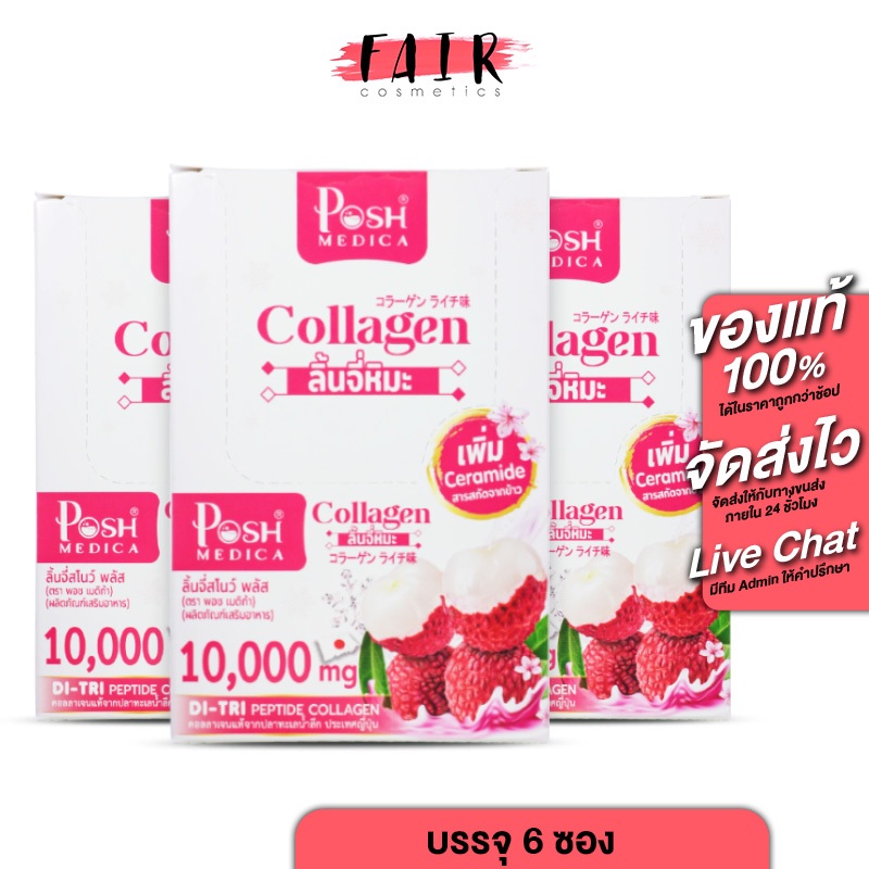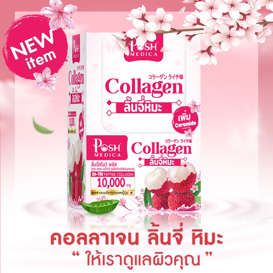 [3 กล่อง] PoshMedica Collagen DI-TRI Peptide ลิ้นจี่สโนว์ พลัส [6 ซอง] ลิ้นจี่หิมะ