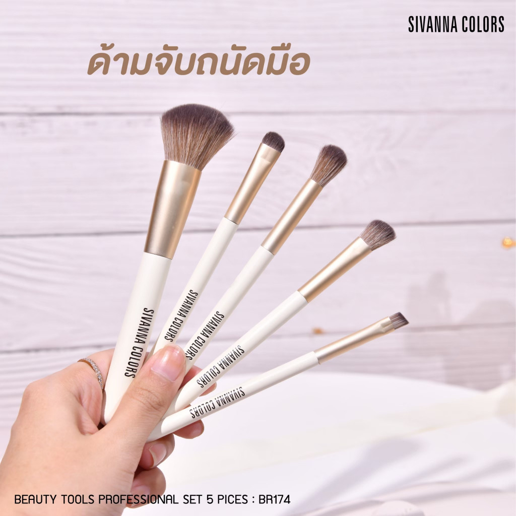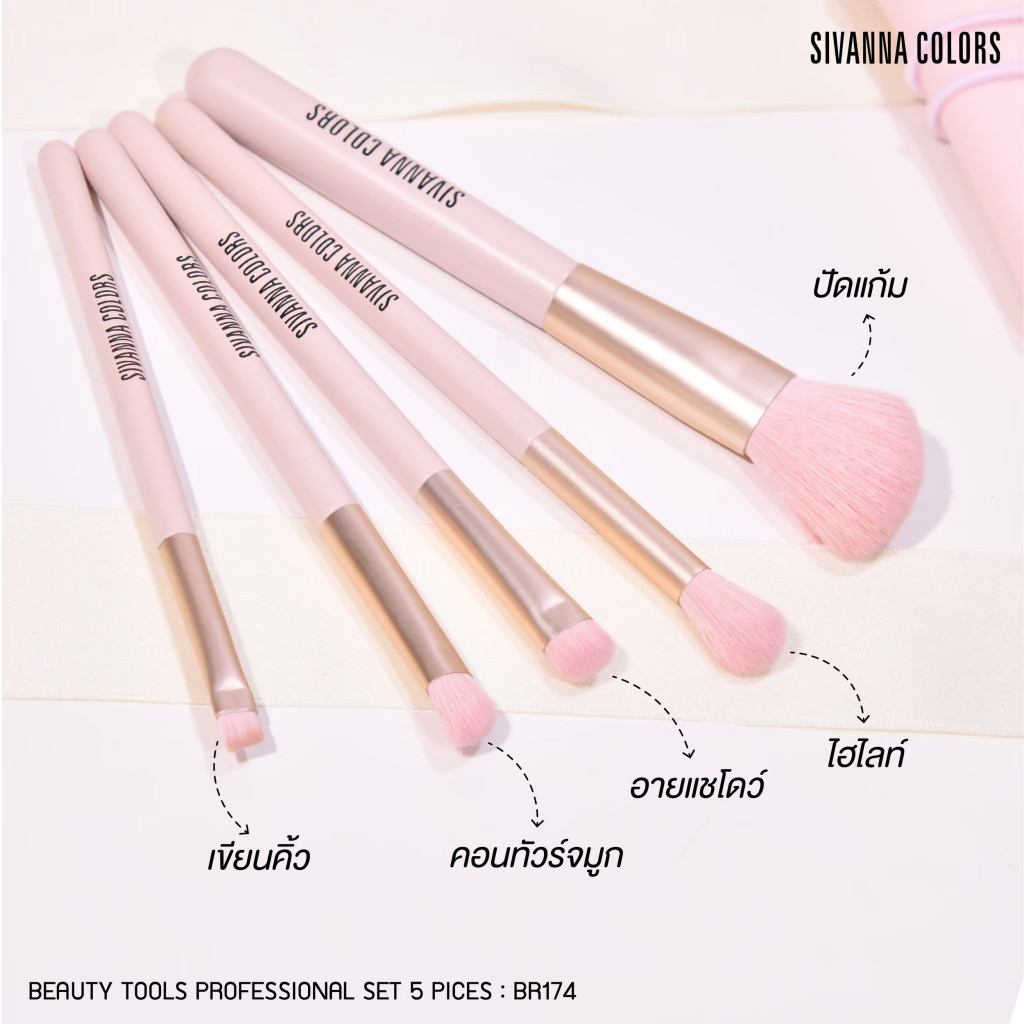 BR174 แปรงแต่งหน้า 5 ชิ้น บิวตี้ คัลเลอร์ ทูลส์ Sivanna Colors Beauty Color Tools Professional Set