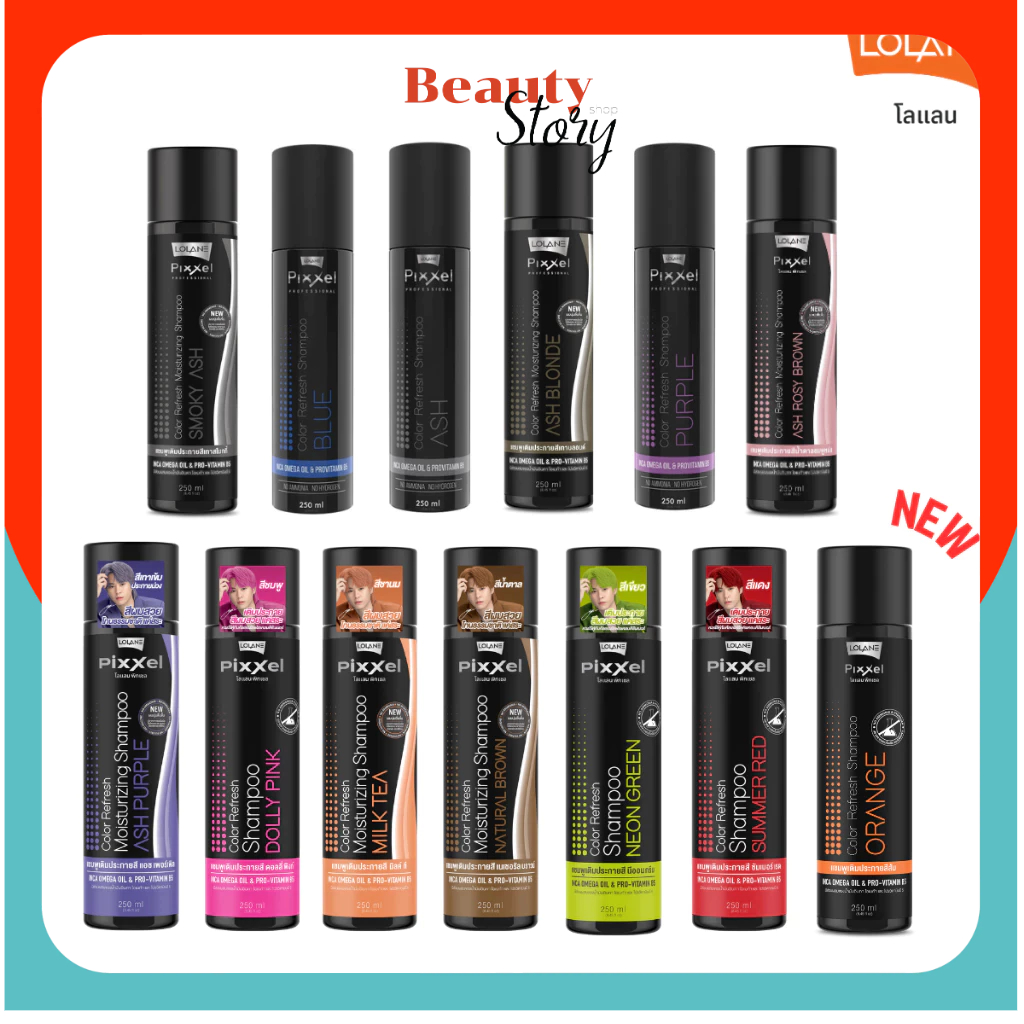 💤โลแลน พิกเซล แชมพู Lolane Pixxel Color Refresh / Anti Yellow Shampoo เติมประกาย สีผม เทา ม่วง