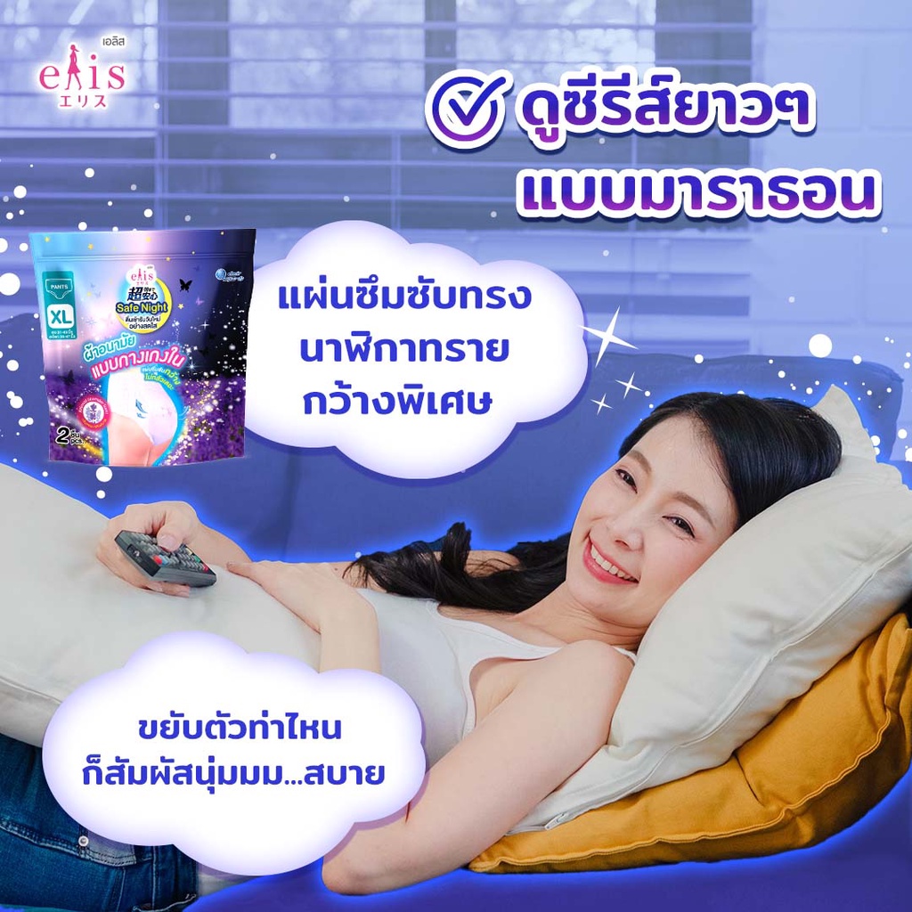 ผ้าอนามัยแบบกางเกงใน elis รุ่น Safe Night Lavender Scent กลิ่นลาเวนเดอร์ 2 ชิ้น/แพ็ค