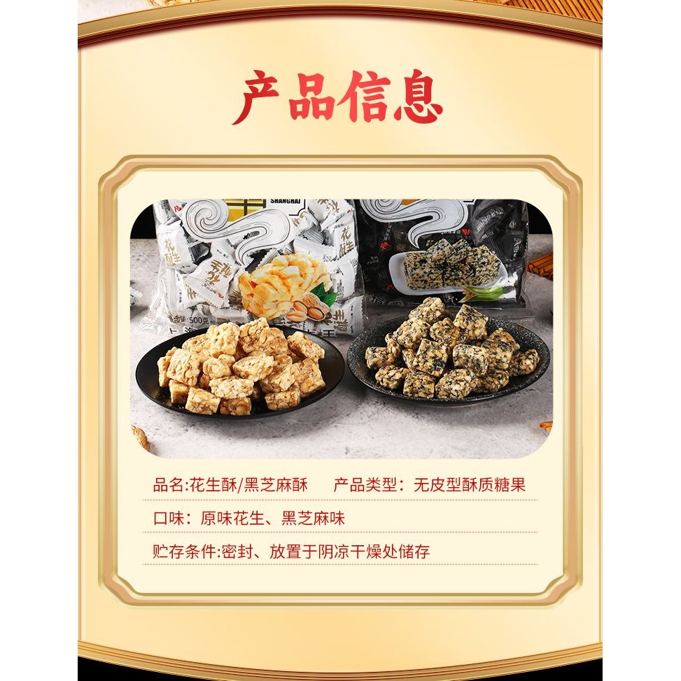 Shanghai Old Taste Finger Soft Peanut Crisp Shanghai Specialty Black Sesame Peanut Crisp Candy Snack Food Candy Snacks