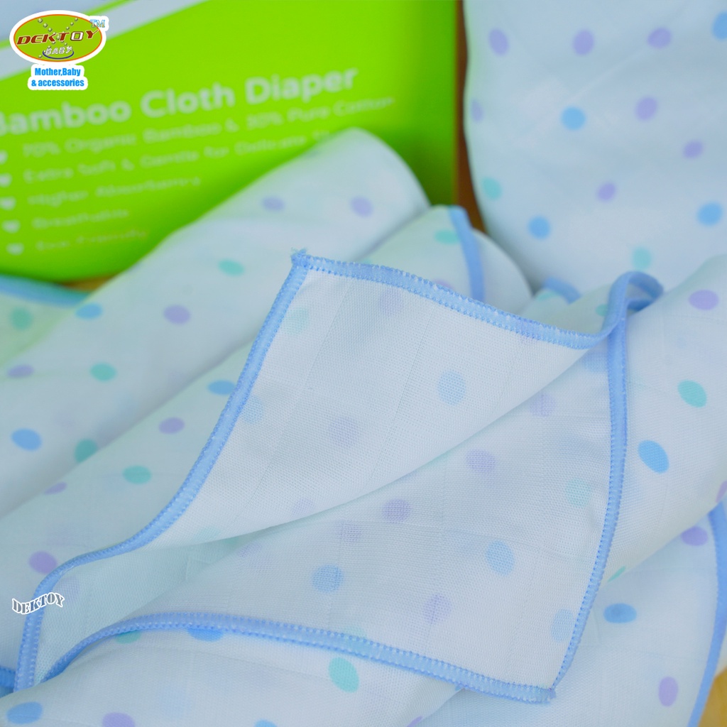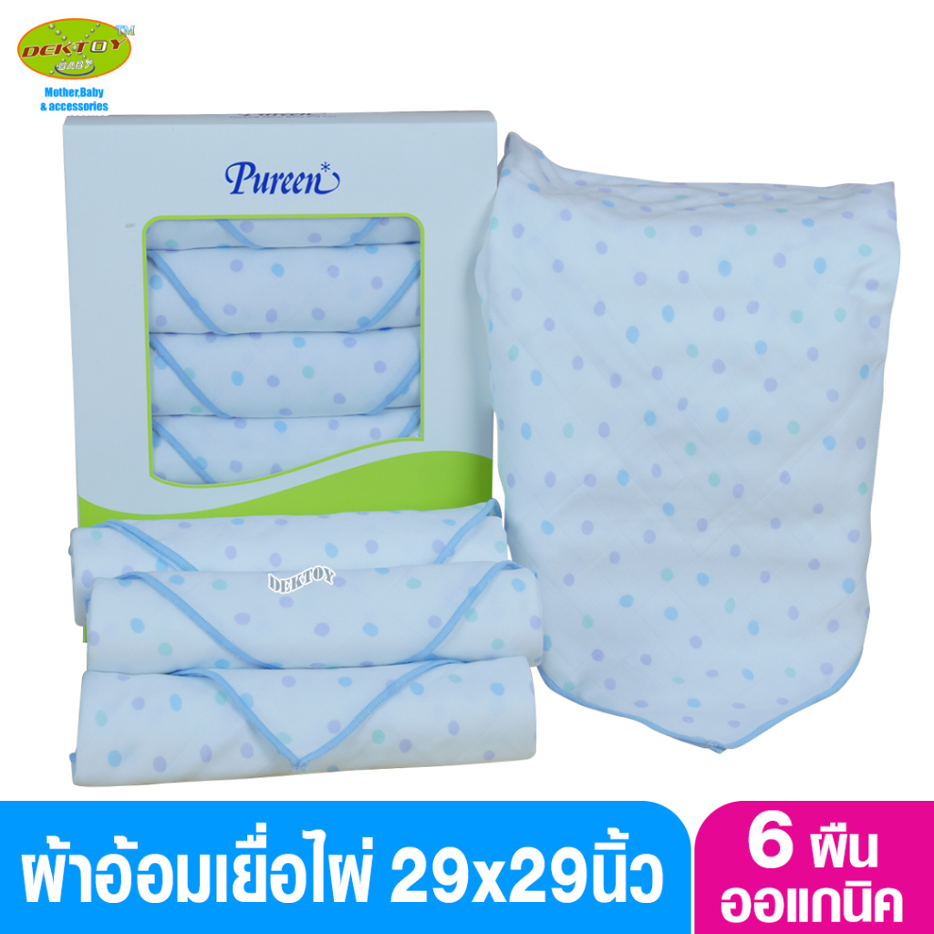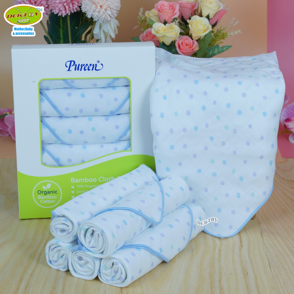 Pureen เพียวรีน ผ้าอ้อมเยื่อไผ่เพียวรีนสีฟ้า 29 x 29 นิ้ว 6 ผืน Organic Bamboo Cloth Diaper