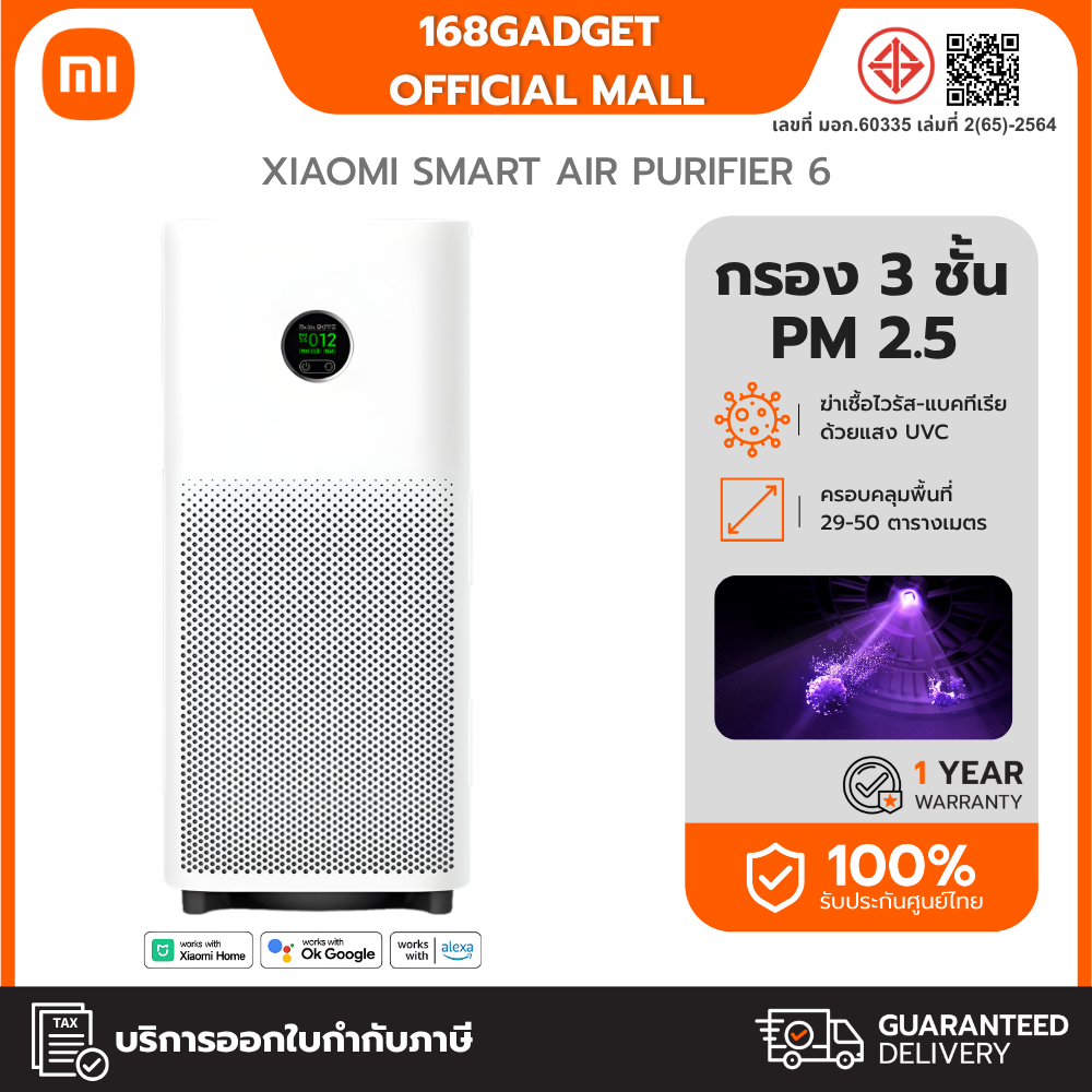 [NEW] Xiaomi Smart Air Purifier 6 เครื่องฟอกอากาศ กรองฝุ่น PM2.5 ฆ่าเชื้อด้วยแสงสีม่วง ของแท้ ประกันศูนย์ไทย 1 ปี