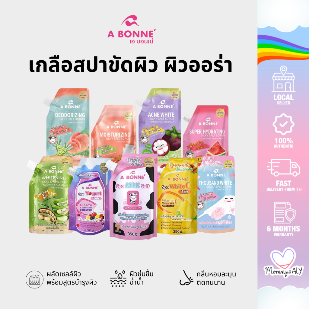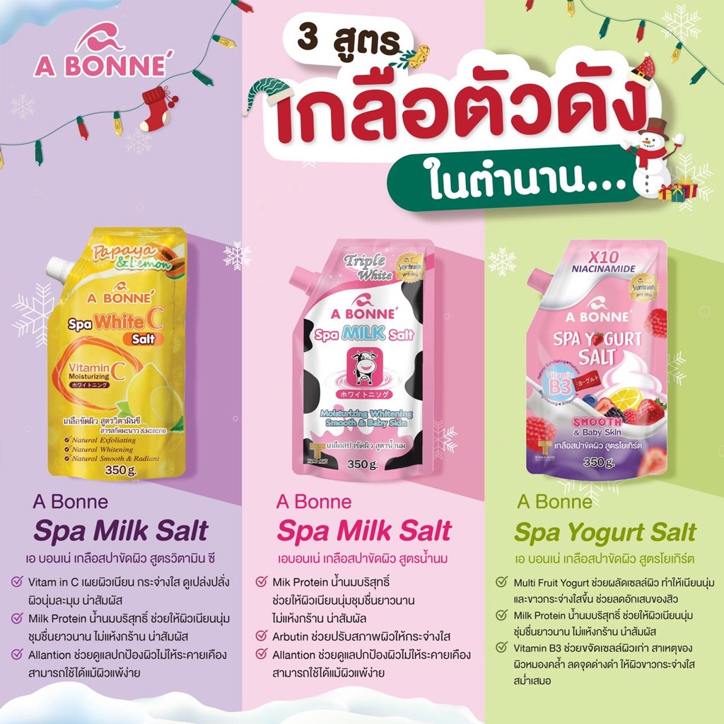 A Bonne เอ บอนเน่ เกลือสปาขัดผิว สูตรน้ำนม สครับผิวกาย ขัดผิว ผิวออร่า เกลือนมผสม Vitamin C Yoghurt 9สูตร 350กรัม