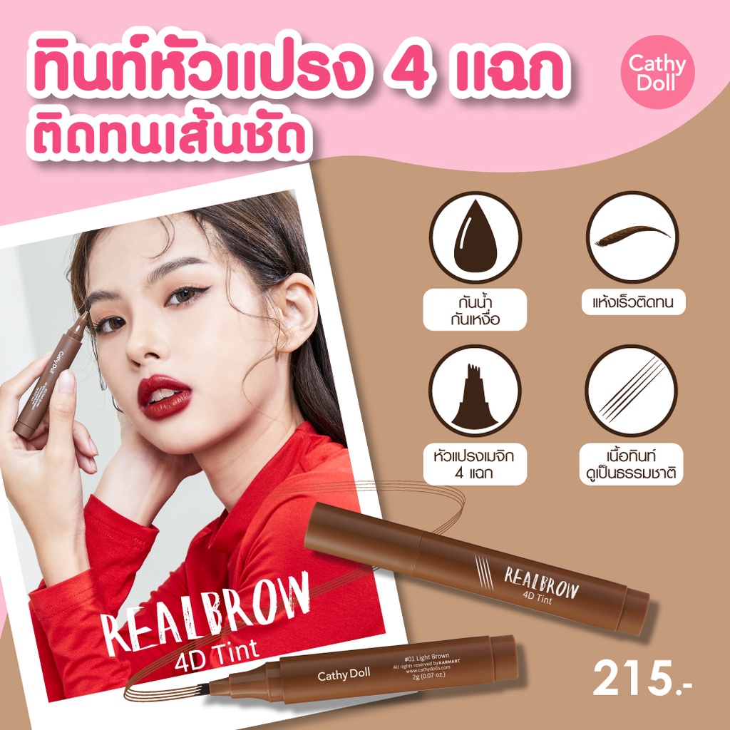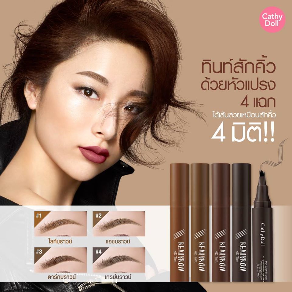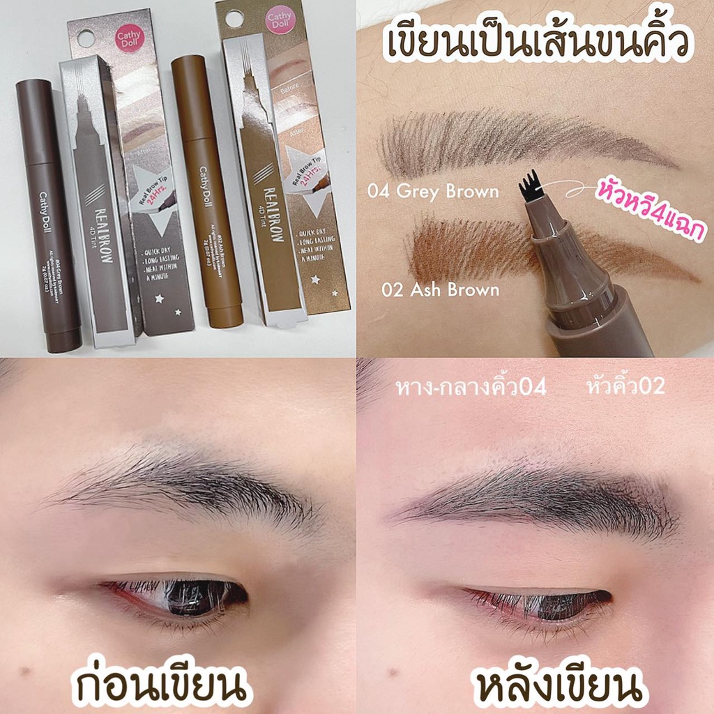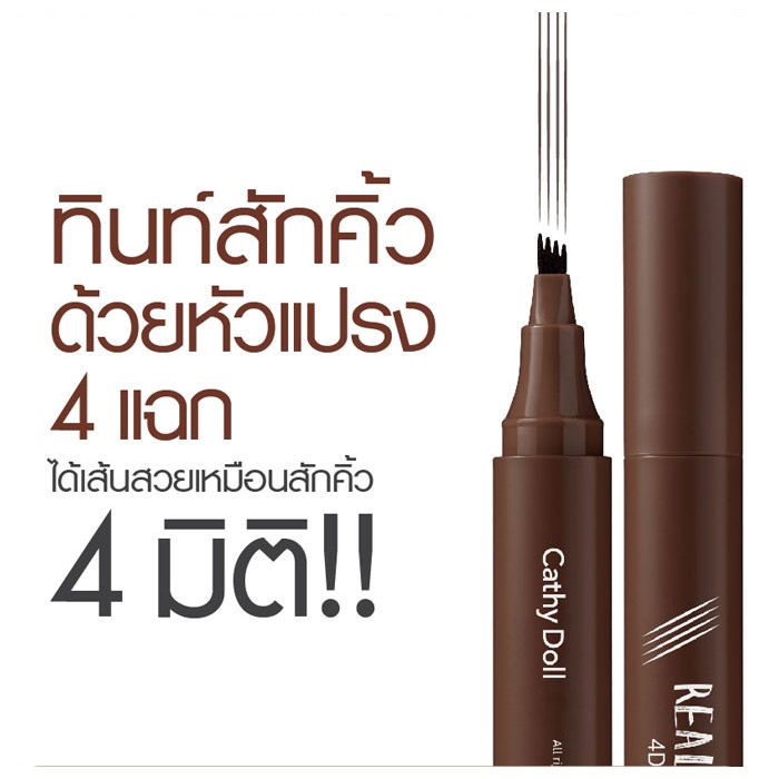 ถูก/แท้/มีไลฟ์ เขียนคิ้ว Cathy Doll Real Brow 4D Tint ปากกาสักคิ้ว 4 มิติ ทินท์คิ้ว คิ้ว4D
