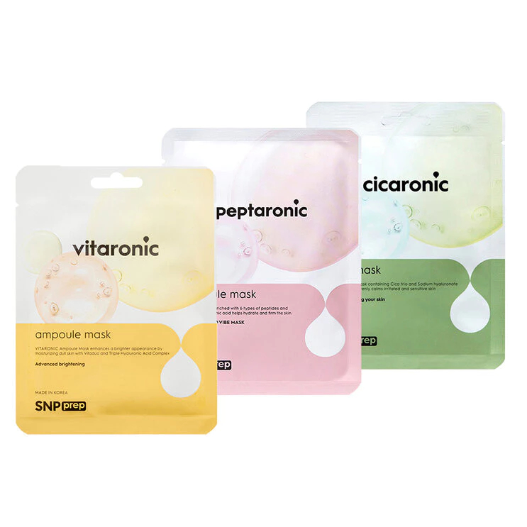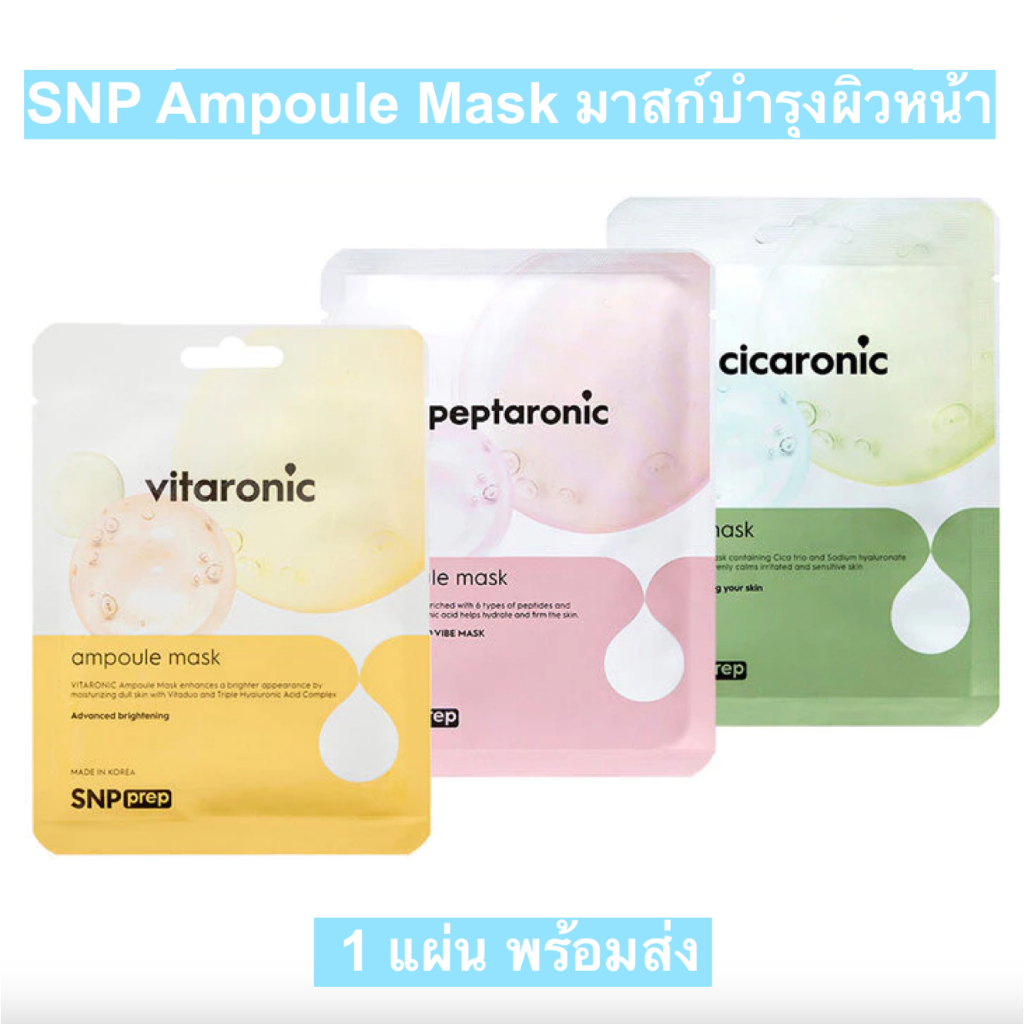 🌈 1 แผ่น พร้อมส่ง 🌈 SNP Ampoule Mask เอสเอ็นพี แผ่นมาสก์บำรุงผิวหน้า 25ml (Peptaronic/Cicaronic/Vitaronic) 🌈