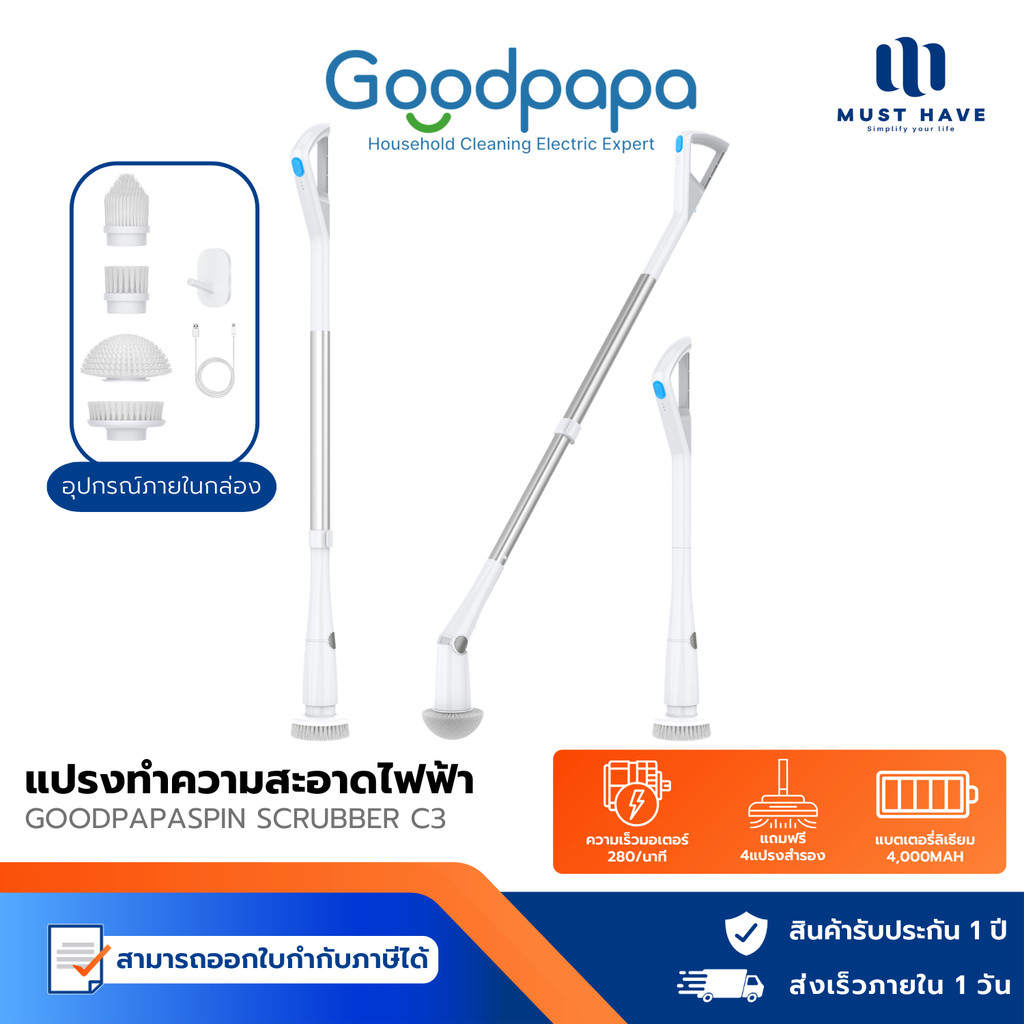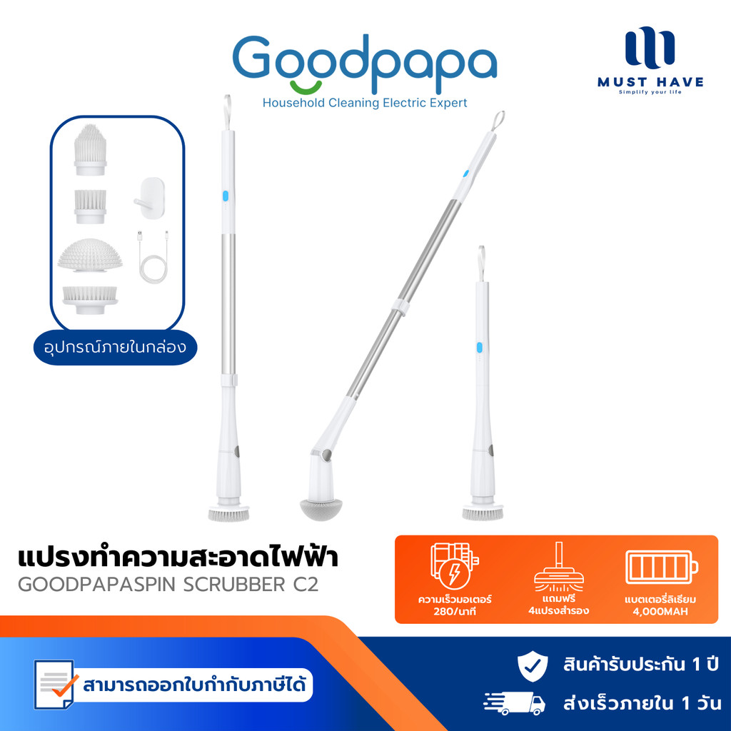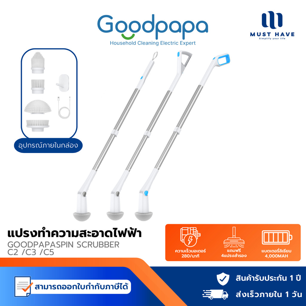 Goodpapa Electric cleaning brush C2/ C3/ C5 แปรงทําความสะอาดไฟฟ้า พร้อมหัวแปรง 4 หัว แยก 2 ความเร็ว เปลี่ยนความสูงได้