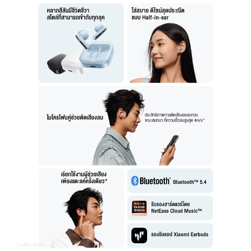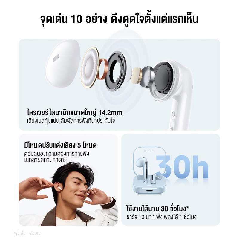 Redmi Buds 6 หูฟังเอียร์บัด หูฟังบลูทูธไร้สาย ลดเสียงรบกวนด้วย AI มีโหมดปรับแต่งเสียง 5 โหมด สลับง่ายแค่กดปุ่ม