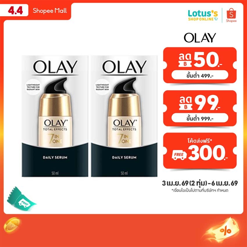 [แพ็คคู่สุดคุ้ม] โอเลย์ โททัล เซรั่มโอเลย์ สูตรช่วยฟื้นฟูผิว 50 มล. OLAY TOTAL EFFECT SERUM 50ML X2