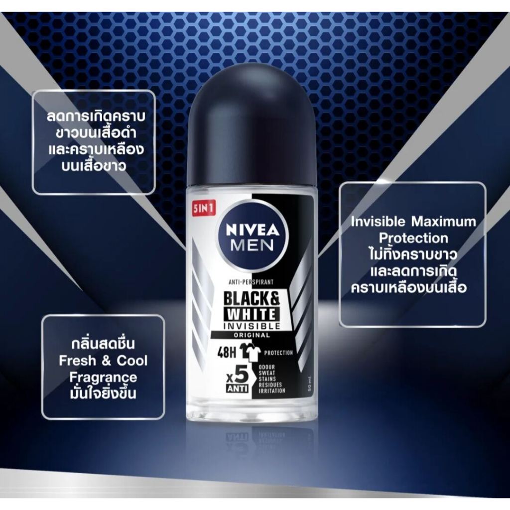 [แพ็ค 4+1] Nivea Men Roll On นีเวีย โรลออน เมน 25 มล. โรลออนระงับกลิ่นกาย โรลออนสำหรับผู้ชาย