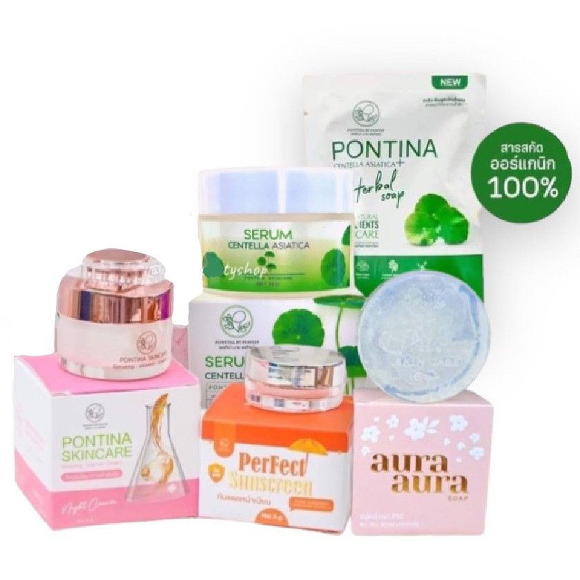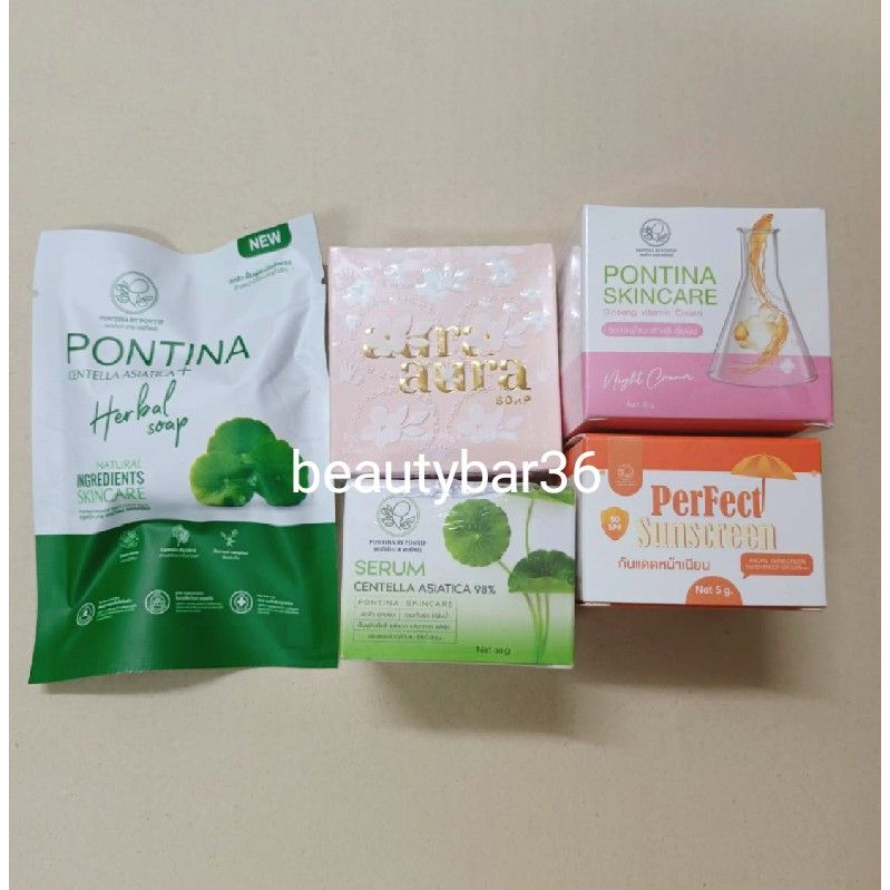 แพ็คเกจใหม่ล่าสุด พรทิน่า เซรั่มใบบัวบก Pontina สบู่ใบบัวบก ครีมกันแดดพรทิน่า คลีนซิ่งพรทิน่าเจล สบู่กาแฟพรทิน่า