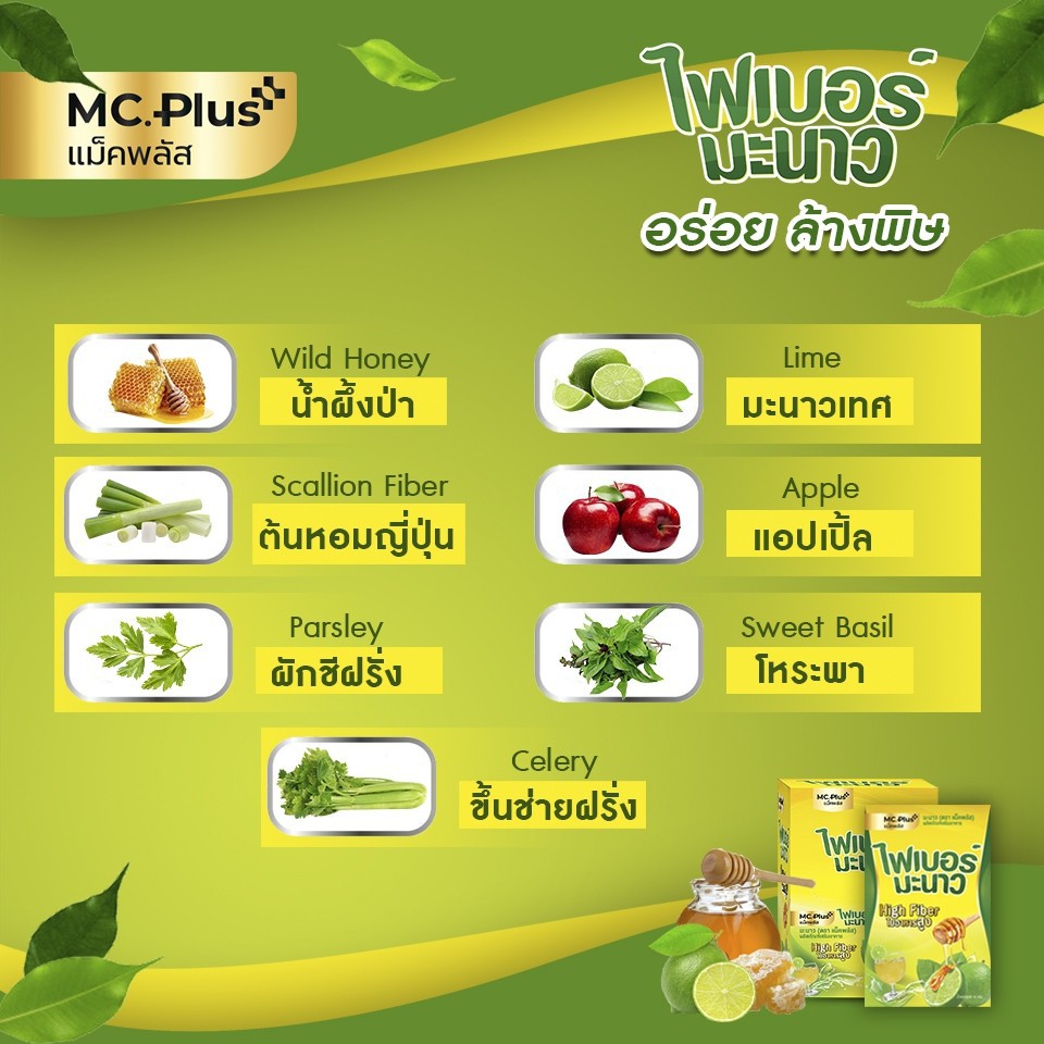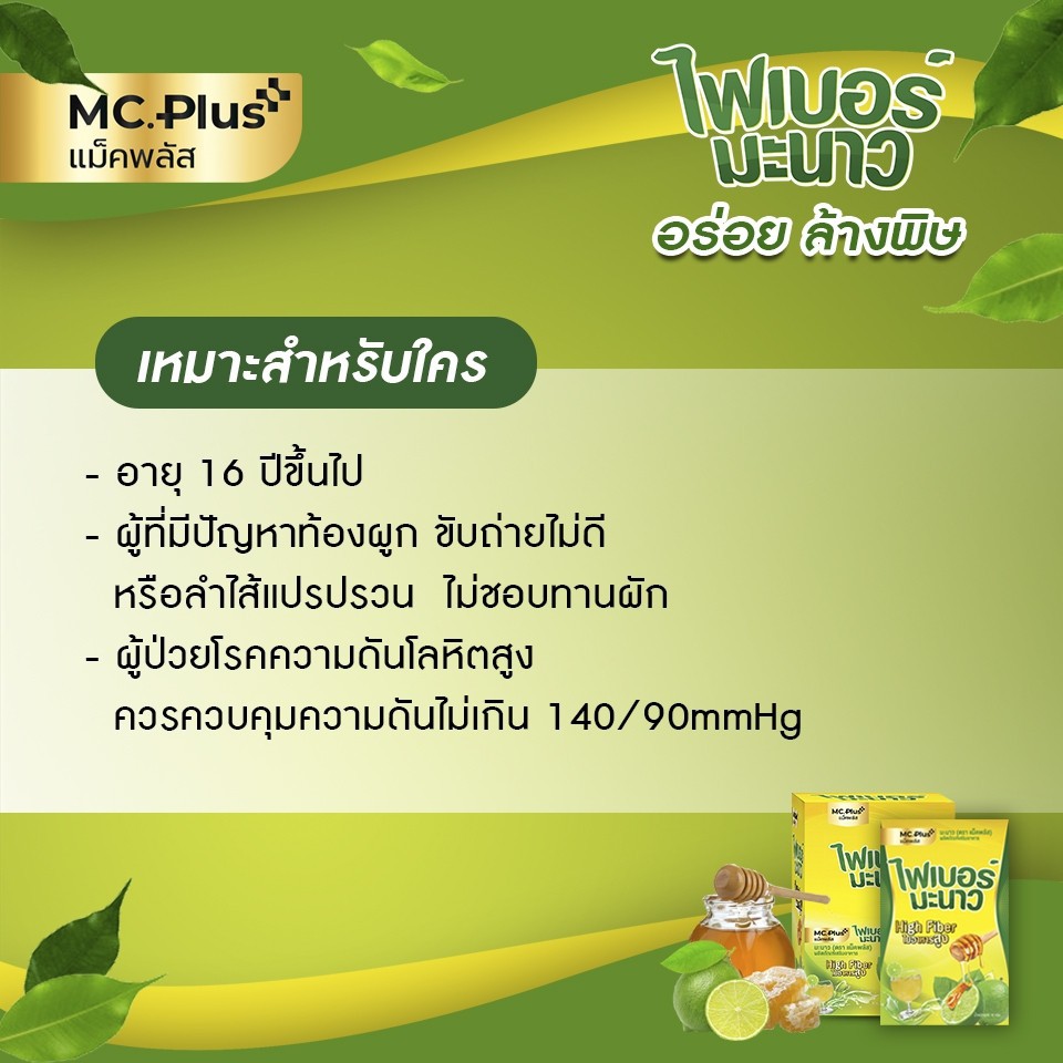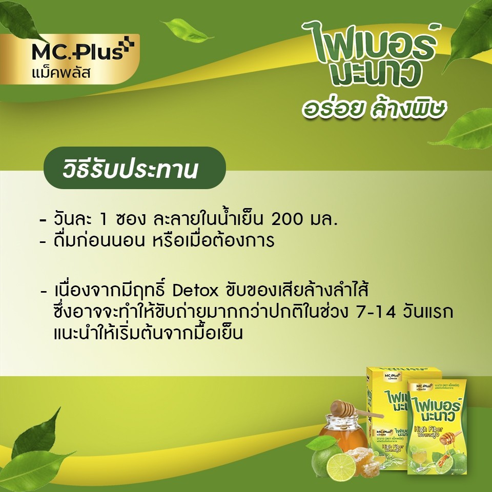 PoshMedica Fiber พอช เมดิก้า ไฟเบอร์ มะนา ว [6 ซอง] ใยอาหารสูง [MC Plus แม็ค พลัส เดิม]