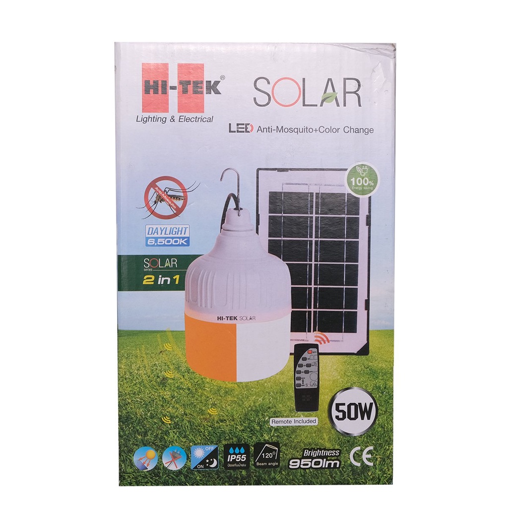 HI-TEK หลอดไฟ โซล่าเซลล์ ไล่ยุง พร้อมรีโมท LED 50 วัตต์ (Day Light) |ZWF|