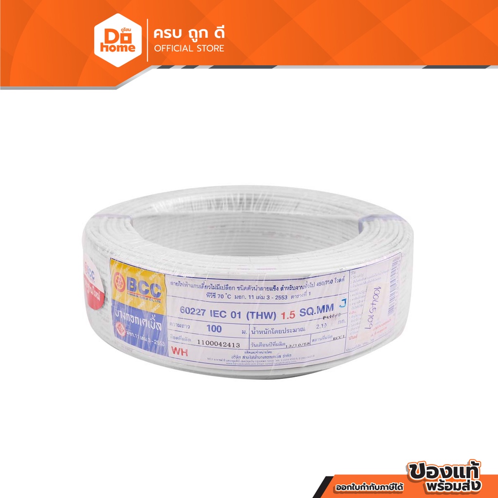 BCC สายไฟ IEC01 (THW) 1x1.5 Sqmm. ยาว 100 เมตร สีขาว |ROL|