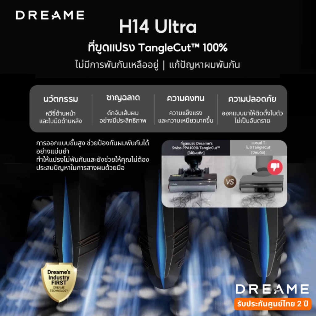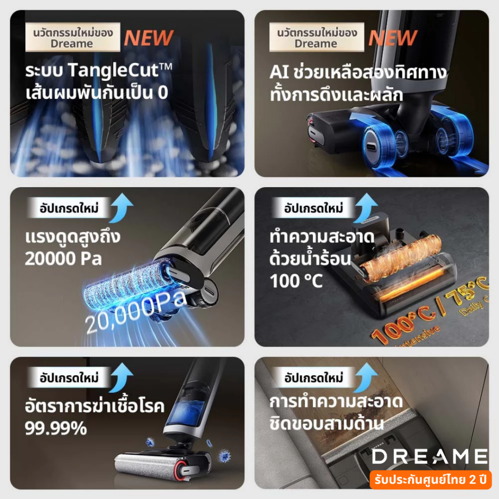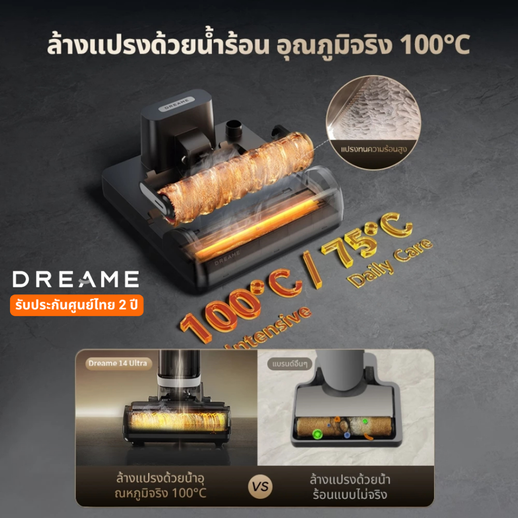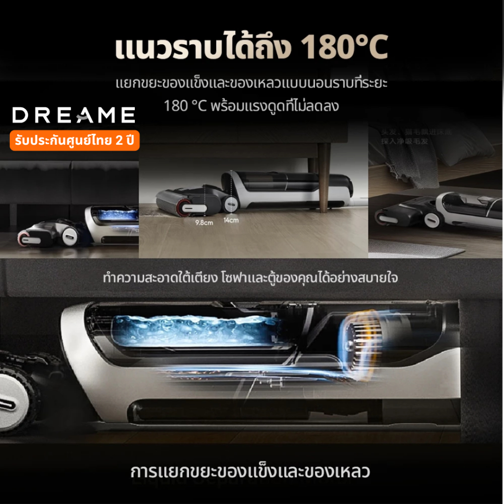 Dreame H14 Ultra Wet and Dry Vacuum มีถังเก็บน้ำสะอาด 880 ml และถังเก็บน้ำสกปรก 650 ml รับประกันศูนย์ไทย 2 ปี