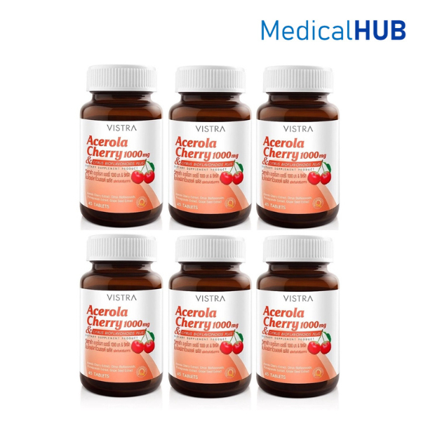 Vistra Acerola Cherry 1000 mg วิสทร้า อะเซโรลา เชอร์รี่ ขนาด 45 เม็ด จำนวน 6 ขวด (6X11942)