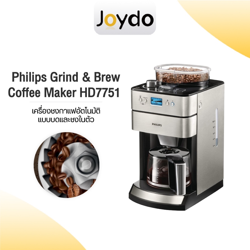 Philips Grind & Brew Coffee Maker HD7751 เครื่องชงกาแฟอัตโนมัติ เครื่องชงกาแฟ แบบบดและชงในตัว การบดทรงกรวย ปรับความละเอียดได้ 9