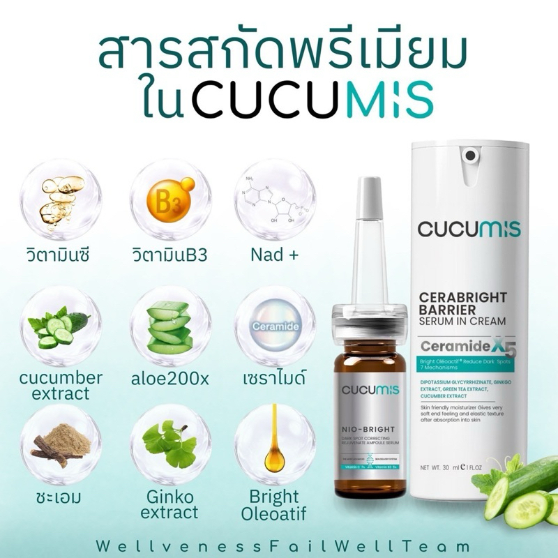 New!!Wellveness Cucumis แอมพลูเซรั่ม เซรั่มผิว 18ml.+ เซราไบรท์ครีม 30ml. ช่วยให้ผิวกระจ่างใส ขาวขึ้น รูขุมขนกระชับผิวใส