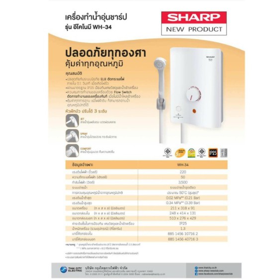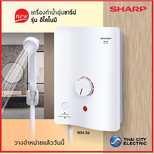 เครื่องทำน้ำอุ่น SHARP รุ่น WH-34 (3,500 วัตต์) รับประกันศูนย์ หม้อต้มทองแดง