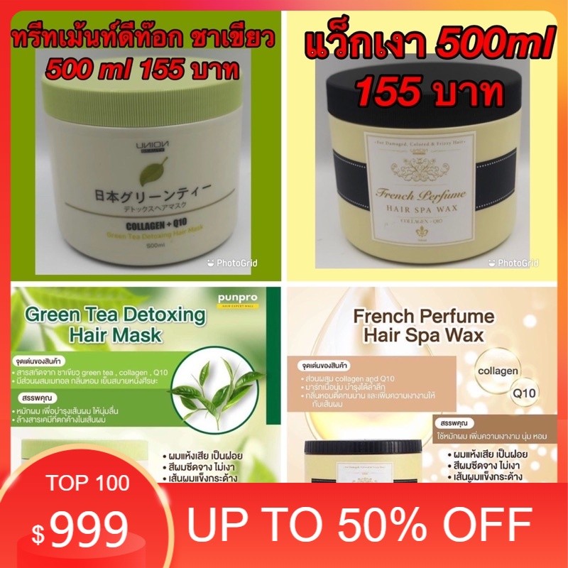 💯💯💯ทรีทเม้นท์ ยูเนียน คอลาเจน ดีท๊อกและ 💯💯💯ทรีทเม้นท์ยูเนียนแฮร์สปาแว็กเงา ขนาด 500ml 🏵เป็นครีมบำรุงผมชนิดล้างออก